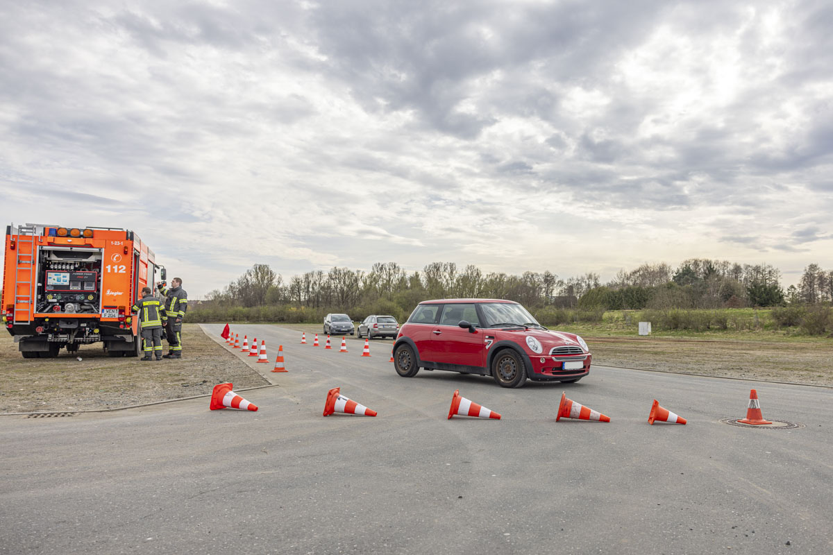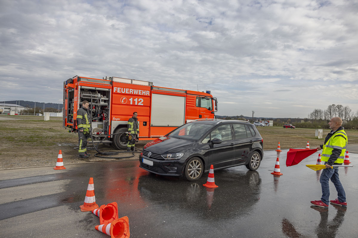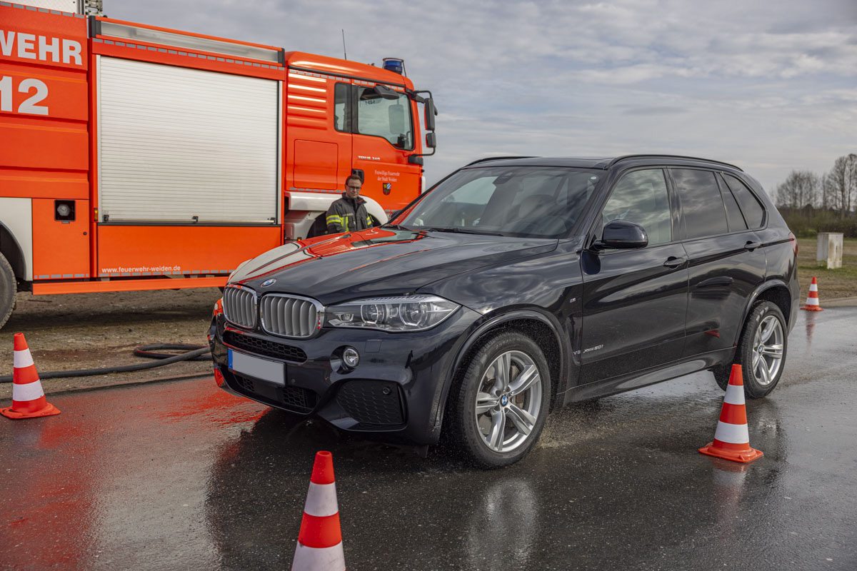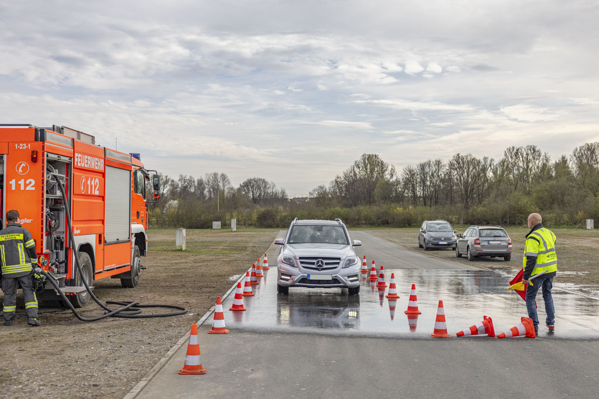 Nach einigen Übungseinheiten wurden die Fahrer immer sicherer und lernten ihre Boliden im Grenzbereich kennen. Sie trauten sich immer häufiger, das Lenkrad beim Ausweichen stärker einzuschlagen und bei der Gefahrenbremsung ordentlich in die Eisen zu gehen. Selbst nachdem die Freiwillige Feuerwehr der Stadt Weiden die Fahrbahn mit Wasser benetzt hatte, fuhren die Senioren den Kurs sicher ab und kamen vor den Pylonen zum Stehen.