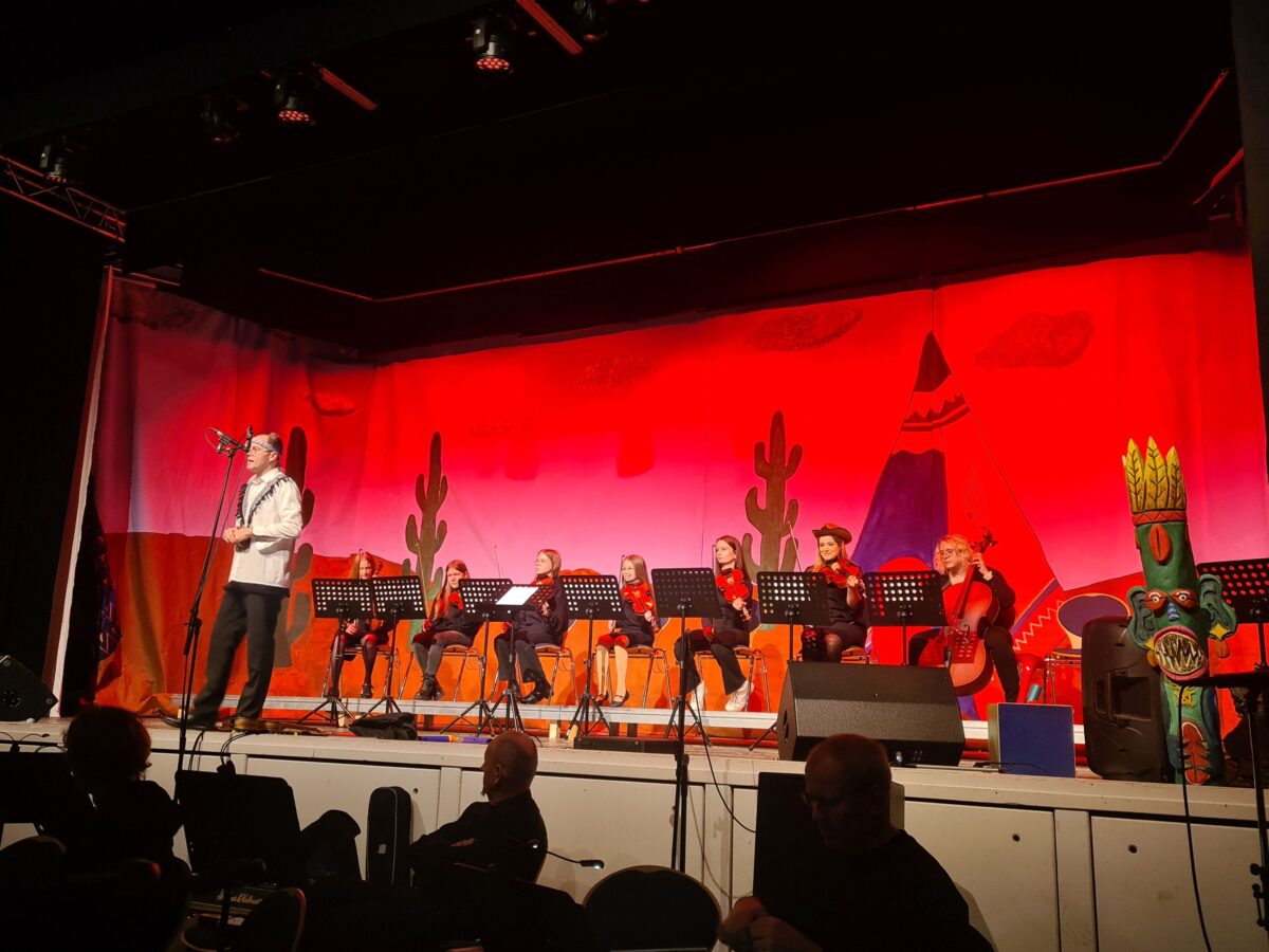 Auch die Streicher- und Bläserklasse hatten eine Vorführung mit Super Trouper, Old McDonald, Ode an die Freude, Finlandia, sowie Wilhelmus, der niederländischen Nationalhymne. Souverän leitete Dirigent Markus Werner alle Gruppen und führte bei dem Musical das Orchester, den Chor und die Solisten gekonnt durch die Aufführung.