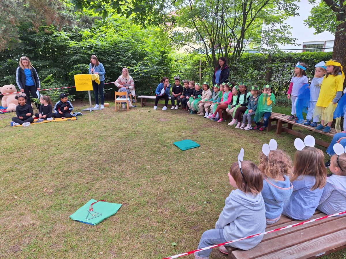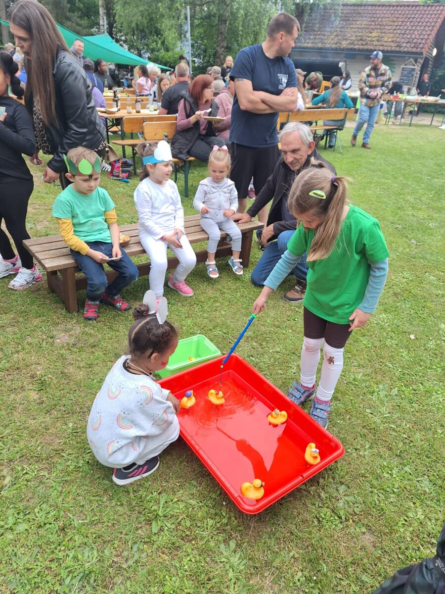 Ein Highlight zu Beginn des Fests war der Auftritt der Kinder als “Die musikalische Mäusefamilie”. Dieser sorgte für große Begeisterung und viel Applaus unter den Anwesenden. Neben der musikalischen Darbietung bot das KiTa-Personal zahlreiche Spielstationen an, bei denen die Kinder unter anderem beim Entenangeln, Sackhüpfen, Schubkarrenrennen oder Ringe werfen ihre Geschicklichkeit und Kraft demonstrieren konnten.