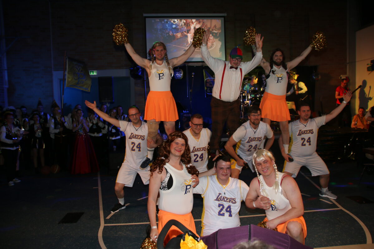 Mit Jugend- und Prinzengarde, Kinderfunki und Funkenmariechen zog der PFV die Menge schnell auf seine Seite. Das Männerballett begeisterte mit Szenen aus der Schulzeit inklusive Hits aus dem High School Musical. Das Showtanzensemble sorgte mit Hits von ABBA für einige Ohrwürmer im Publikum.