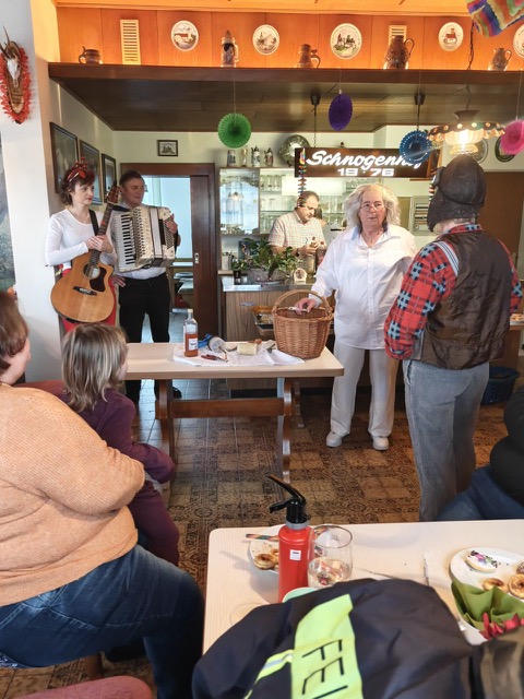 Ausgiebig wurde an diesem Nachmittag Sport getrieben: Es wurde getanzt und geschunkelt; die Lachmuskeln wurden übermäßig strapaziert, und das Mitsingen kam auch nicht zu kurz. Auch für den Appetit hatten die Landfrauen mit einem reichhaltigen Kuchenbüfett gesorgt. Die Faschingskrapfen dazu hatte die Bäckerei Weiß aus Woppenhof spendiert, den Kaffee die Firma Karl Liegl-Bau.