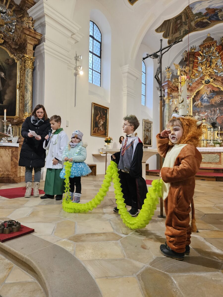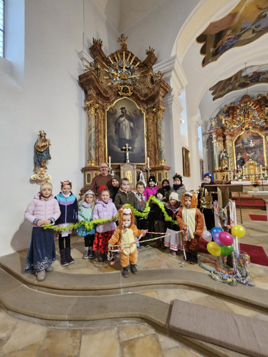 Bunt, fröhlich und bis auf den letzten Platz gefüllt präsentierte sich die Kirche „Mariä Himmelfahrt“ der Pfarrei Böhmischbruck beim diesjährigen Faschingsgottesdienst. Kleine und große Drachen, Glitzerfeen, Wunderbäume, spanische Flamenco-Tänzerinnen, Prinzessinnen, Löwen und Zauberer marschierten in die Kirchenbänke ein. Auch unter den Erwachsenen blitzten hier und da farbenfrohe Hütchen, Blumenhaarreife und Glitzerkronen hervor.