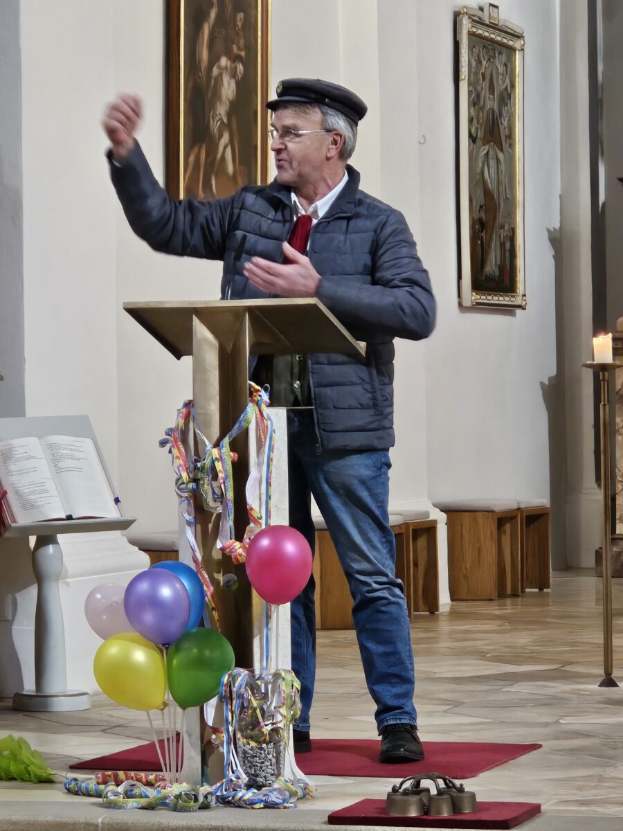 Zum Abschluss brachte Richard Reger mit amüsanten Geschichten und Witzen aus dem Dorf- und Kirchenleben die Kirchgänger noch einmal zum Lachen. Kräftiger Applaus erfüllte den Raum. Pater Joseph dankte allen Mitwirkenden und besonders den „Danielas“, die sich immer wieder neue Ideen für die Gestaltung der Gottesdienste einfallen lassen. Auch die fantasievolle, bunte Dekoration von Monika Duschinger und Johanna Kurzka erhielt Anerkennung. Mit den besten Wünschen für einen wunderschönen Faschingssonntag voller Lachen und Fröhlichkeit sowie der Einladung zum Aschermittwochsgottesdienst entließ Pater Joseph die bunte Gemeinde, und viele gingen mit einem Lächeln im Gesicht nach Hause.