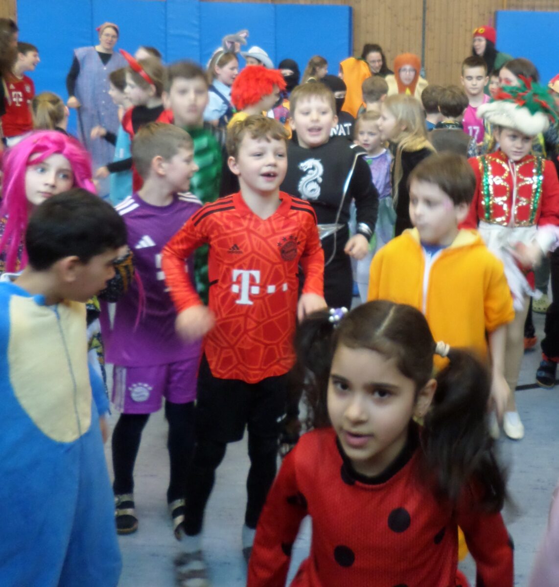 Am Freitag vor den Faschingsferien durften alle Kinder maskiert in die Schule kommen. Auch die Lehrerinnen hatten sich verkleidet. Im Nu verwandelte sich das Schulhaus in eine Partymeile. Den Auftakt bildete eine Polonaise durch die Gänge und Klassenzimmer, die in der Turnhalle mit viel Spaß endete. Jede Menge Ohrwürmer wie der „Wackelkontakt“ und der „Gute-Laune-Song“ motivierten die Buben und Mädchen zum Mitmachen. Mit „Etzenricht Helau! Kohlberg Helau!“ wurde die Kohlberger Mini-Garde begrüßt. Die Tänzer sorgten mit ihrem Auftritt für große Begeisterung.