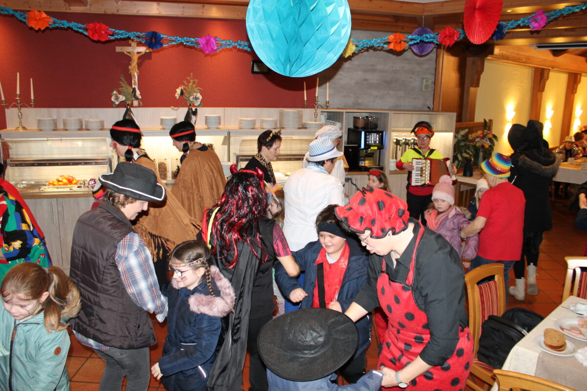 Als sie erfuhren, dass die Landfrauen im benachbarten Sporthotel „Zur Post“ ebenfalls feierten, machten sie einen überraschenden Abstecher und sorgten dort mit eigener Musik für Stimmung. Nach der Polonaise wurden die Erwachsenen aufgefordert, mit ihnen den Ententanz und Rucki-Zucki mitzutanzen. Die ließen es sich nicht zweimal sagen und tobten kräftig mit.