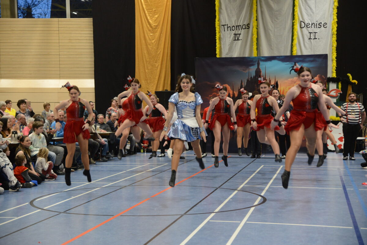 Die Gäste erlebten das komplette Programm der Narrhalla Stadt Windischeschenbach. Der Beginn gehörte den kleinsten Tänzerinnen und Tänzern, gefolgt von der Kindergarde, die unter anderem den Hexentanz zeigte. Die Jugendgarde bot den Besuchern ein Vergnügen mit ihrer Reise ins “Antike Griechenland”, bei dem die akrobatischen Einlagen von Samuel und Lina stets spontane Beifallsstürme ernteten. Der Höhepunkt war natürlich die Mitternachtsshow der Prinzengarde unter dem Motto “Alice im Wunderland”. Die Tanzdarbietungen des Paares Thimo und Mia ließen manchen Besucher erstaunen, besonders wenn Mia sich scheinbar ins Nichts fallen ließ und mit großem Schwung wieder in die Höhe sprang.