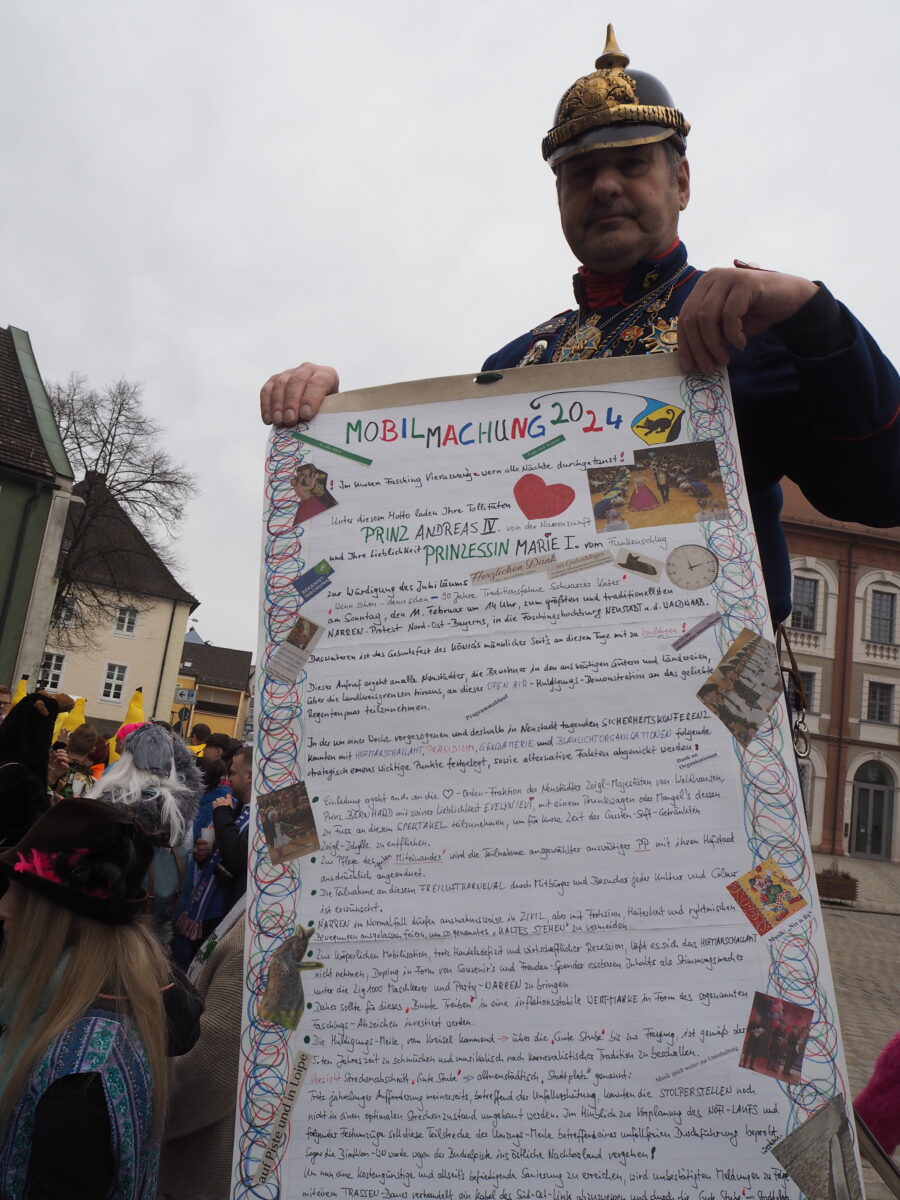 Während der Kundgebung tritt Haslbeck in die Fußstapfen seines historischen Vorbilds und gibt im Namen seiner Tollitäten das Verhalten für den anstehenden Umzug bekannt. Bei diesen feierlichen Ritualen darf sich niemand dem bunten Treiben entziehen. Denn die Teilnahme am Faschingsfest wird geradezu angeordnet.
