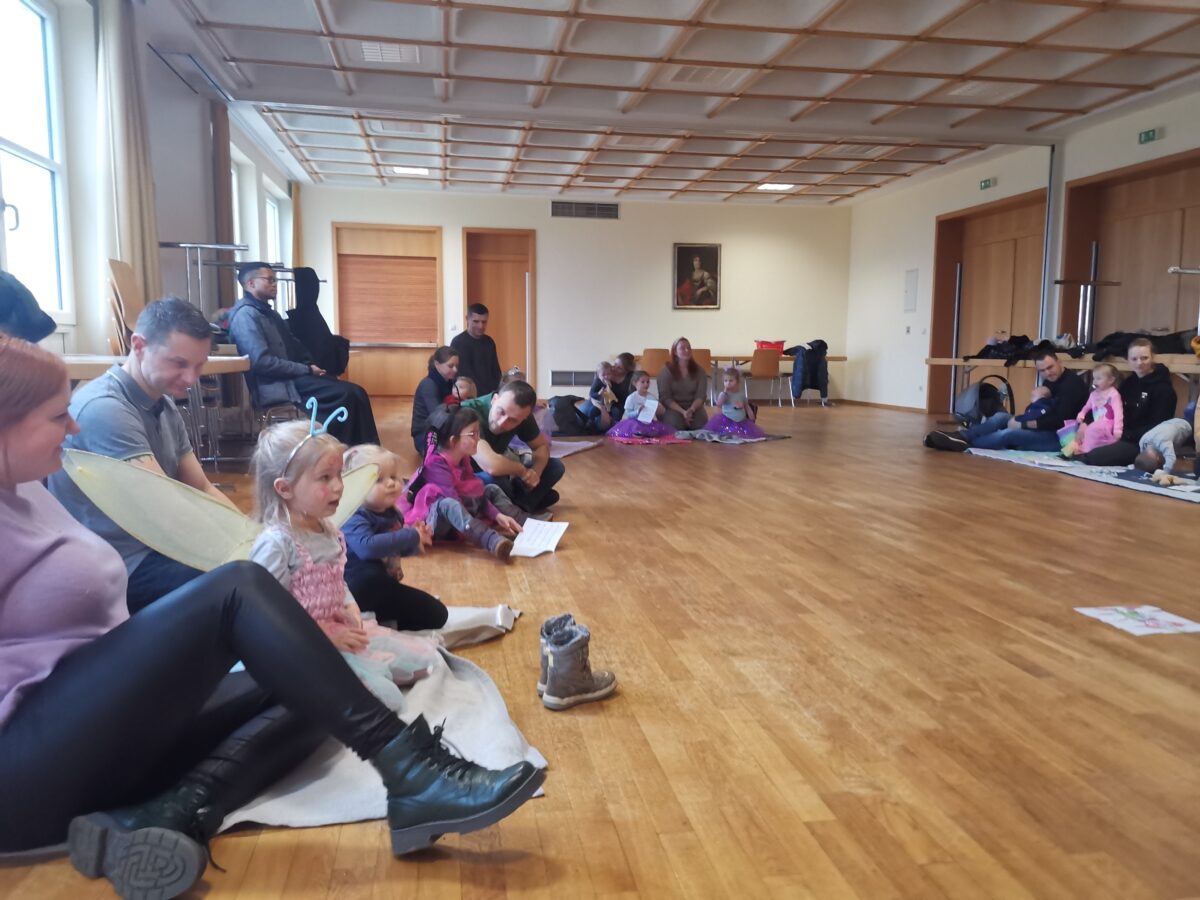 Da die Andacht unter dem Motto von Fasching stand, hatten sich viele Kinder verkleidet und so kamen etliche Schmetterlinge, Königinnen und Prinzessinnen, Erdbeeren, ein Einhorn oder auch ein Marienkäfer in den großen Saal des Pfarrheims.