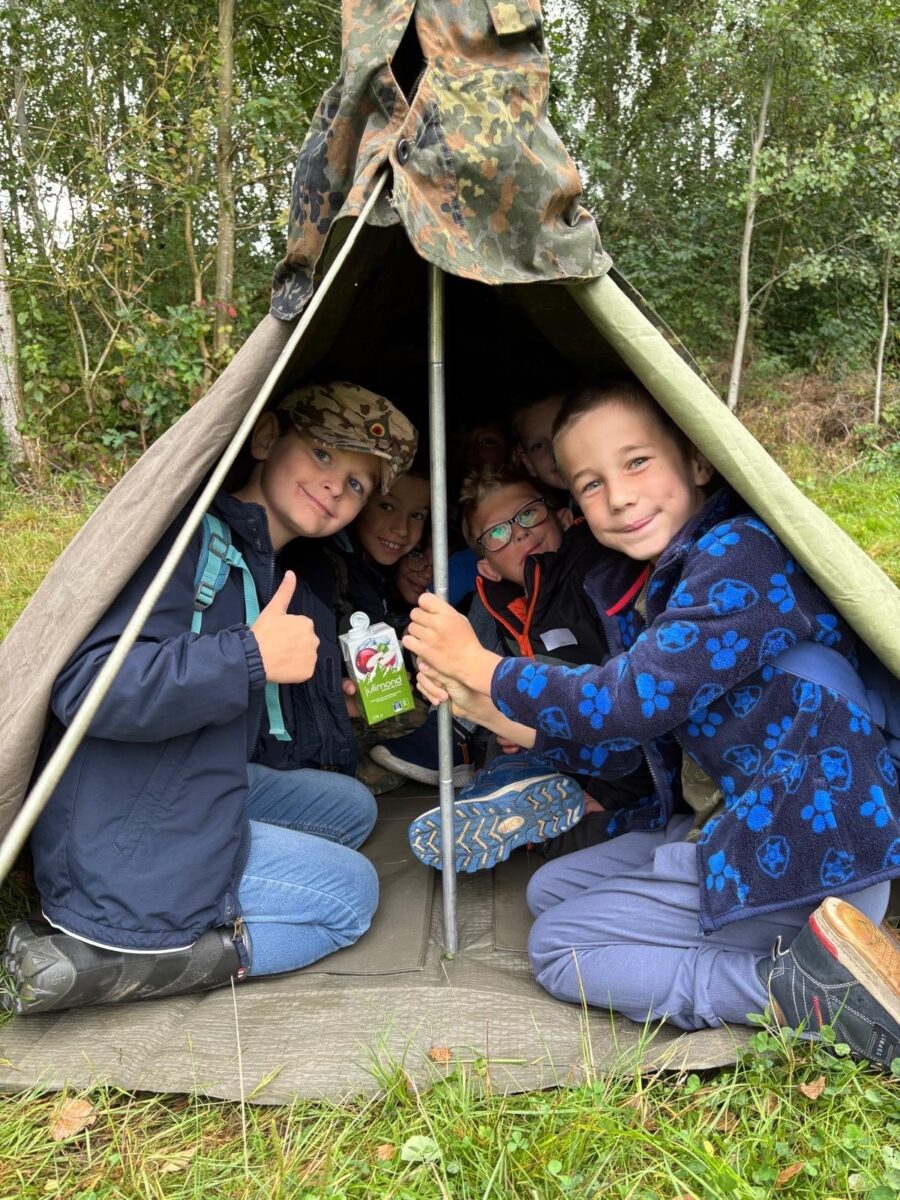 Am Mittwoch, 10. September, erlebten 36 neugierige Kinder im Alter von sechs bis zehn Jahren einen außergewöhnlichen Tag in der Major-Radloff-Kaserne. Von Soldatinnen und Soldaten des Panzerartilleriebataillons (PzArtBtl) 375 lernten sie beim „Abenteuertag bei der Bundeswehr“ im Rahmen des Ferienprogramms des Stadtjugendrings Weiden unter anderem, wie man im Wald übernachten und Essen zubereiten kann. Der Tag begann nach der Begrüßung mit einem Rundgang über das Kasernengelände. Danach lernten die Kinder im Waldstück der Kaserne, wie man sich in der Natur zurechtfindet. Zunächst wurden zusammen mit den Soldaten Zelte aufgebaut und ein Versteck bezogen. In einer weiteren Station durften die Buben und Mädchen selbst Stockbrote über einem Lagerfeuer zubereiten.