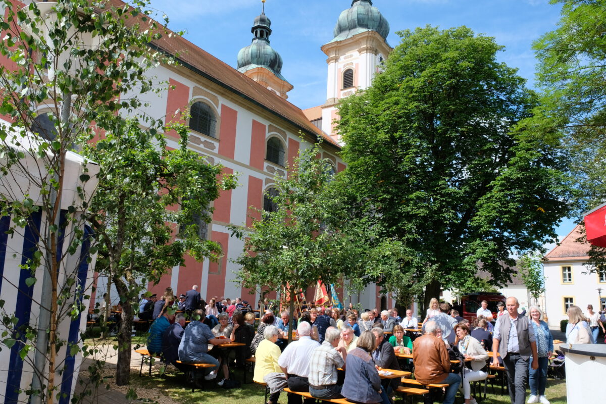 Der Segnung und der Fahrzeugübergabe folgte ein zünftiger Weißwurst-Frühschoppen, musikalisch begleitet von den Klosterbläsern. Weiterer Höhepunkt der „Feier Taufe“, so das Festmotto, war am Sonntagnachmittag ein imposanter Festzug mit zahlreichen Feuerwehr-Abordnungen aus der Region, mit der örtlichen Vereinswelt und mit den Festdamen der Wehr als besonderen Farbtupfer. Das Festgeschehen im großen Klosterhof begleitete die Blaskapelle Dießfurt musikalisch. Zur üppigen Auswahl an Getränken und Grillspezialitäten gesellte sich auch ein reich bestücktes Buffet mit Torten- und Kuchenspenden des Speinsharter Frauenbundes und von Ehefrauen der Brandschützer.