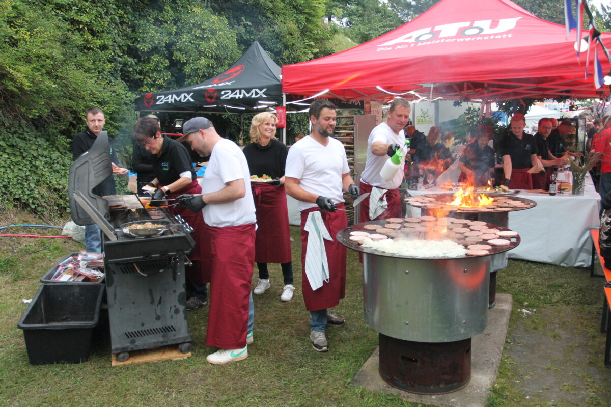 So war es kein Wunder, dass sich sowohl am Marktplatz als auch am Gelände rund um den Stadtweiher die Leute förmlich drängten. “Schlange stehen” war dabei an den Imbiss-Ständen angesagt. Ob etwa Strauben aus Südtirol, Gyros aus Griechenland, Wildspezialitäten, Chicken-Nuggets, Burger, leckere Crêpes oder internationale Desserts: Die Besucher hatten förmlich die Qual der Wahl. Wer gegen 21 Uhr bei der Feuerwehr nach einer “Z‘rissenen Sau” Ausschau hielt, hatte Pech. “Ausverkauft” hieß es nämlich bei den “Floriansjüngern”. Also war Weiterziehen angesagt.