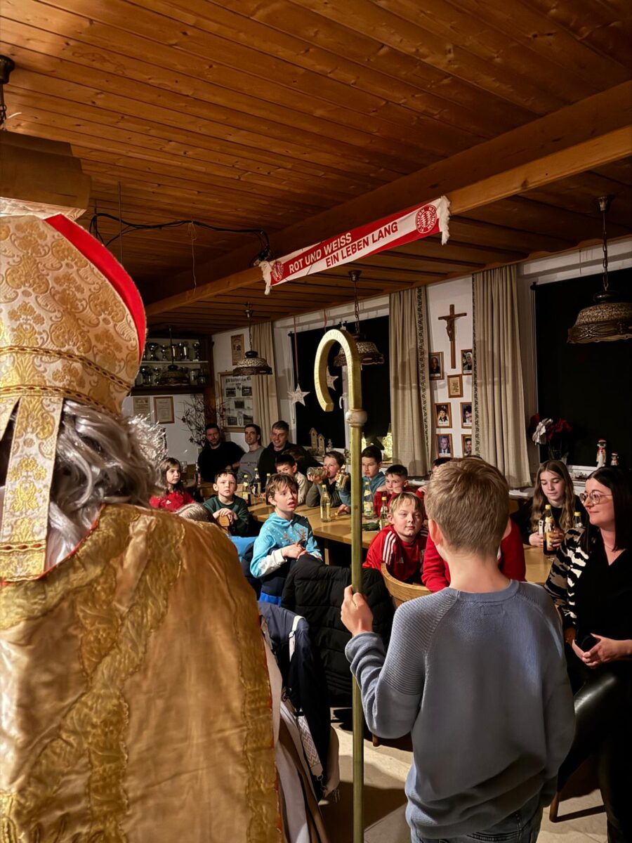 Ein besonderer Moment war der Besuch des Heiligen Nikolaus, der mit Spannung erwartet wurde. Mit wohlwollenden, aber auch mahnenden Worten richtete er sich an die jungen Fußballer. Viel Lob für Fleiß, Teamgeist und Trainingsbeteiligung, aber auch einige kleine Hinweise, woran man im kommenden Jahr noch arbeiten könne. Am Ende überwog jedoch die Freude, denn jedes Kind erhielt ein Geschenk. Einen hochwertigen Trainingspullover, der künftig die Mannschaften einheitlich