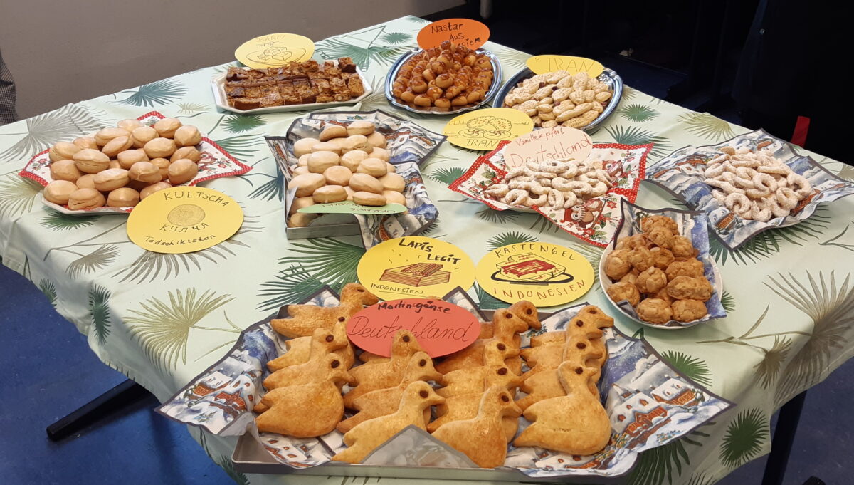 In der Backstube entstanden Festtagsgebäcke aus verschiedenen Ländern: Barfi aus Indien, Ghotab aus dem Iran, Kultscha aus Tadschikistan, Prjaniki aus Russland, Nastar aus Indonesien sowie klassische deutsche Plätzchen. Jedes Gebäck erzählte eine eigene Geschichte und brachte ein Stück Heimat mit.