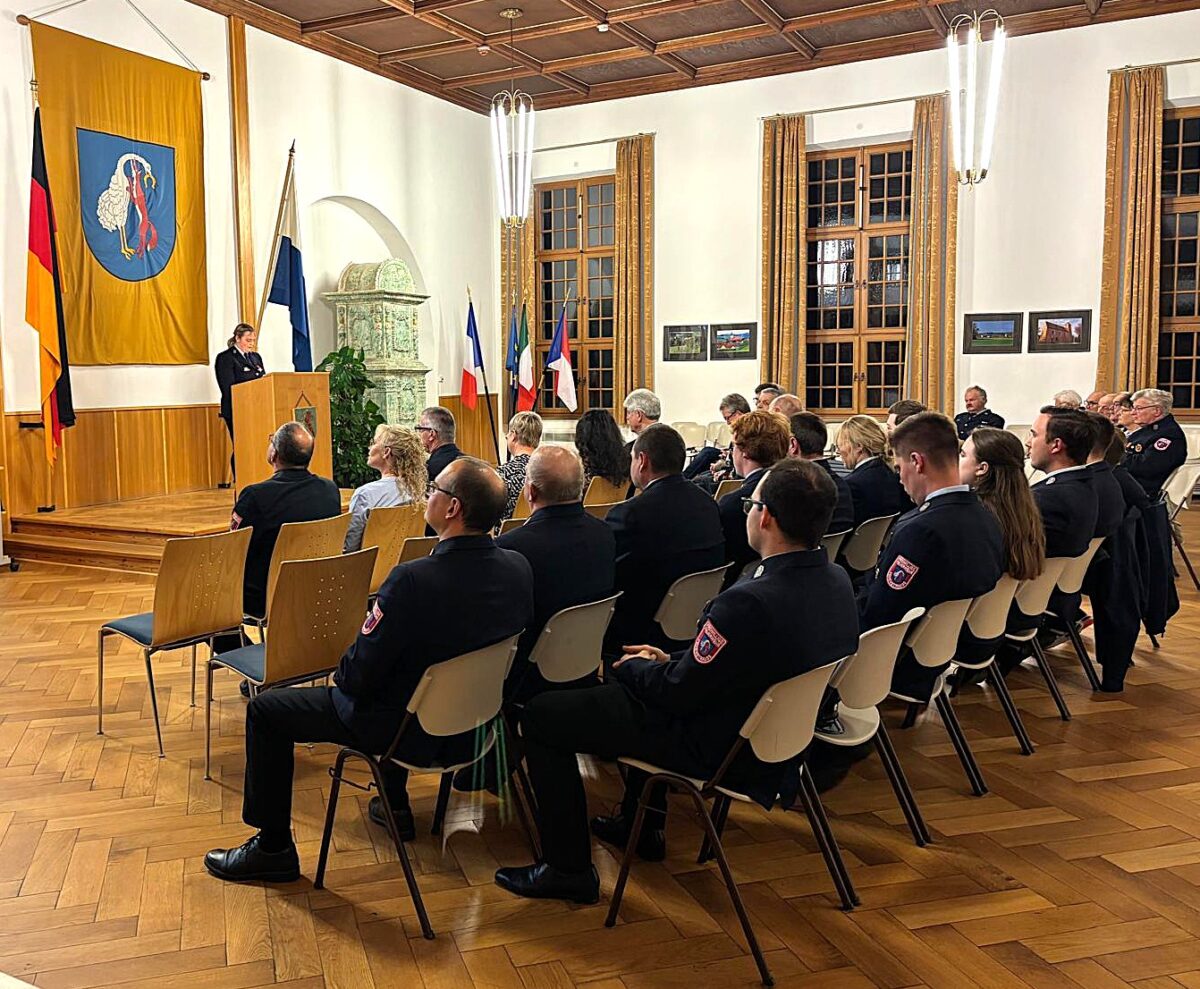 Am 7. November 2025 hat die Feuerwehr Vohenstrauß im Rathaussaal drei verdiente Kameraden geehrt. Die Vorsitzende Corinna Beierl leitete den Ehrenabend und die Versammlung ernannte Mario Dobmayer und Albert Burger zu Ehrenkommandanten sowie Markus Süss zum Ehrenmitglied.