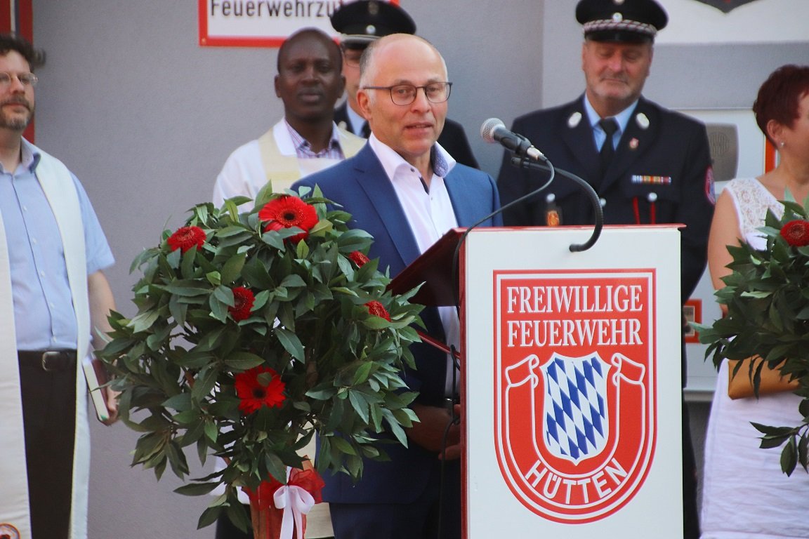 Stellvertretender Landrat Albert Nickl weiß, wie besonders der Tag für die Feuerwehr Hütten ist: Der Wechsel vom TSF zum neuen MLF sei ein Quantensprung vergleichbar mit dem Aufstieg einer Fußballmannschaft von der 2. in die 1. Bundesliga, wie er sagt. Dazu gratuliert auch Kreisbrandrat Marco Saller – betont aber auch die wachsenden Aufgaben und Verantwortung, die die Kameraden auf sich nehmen.