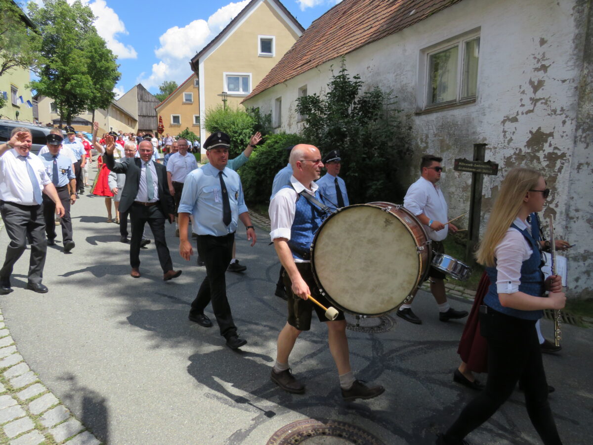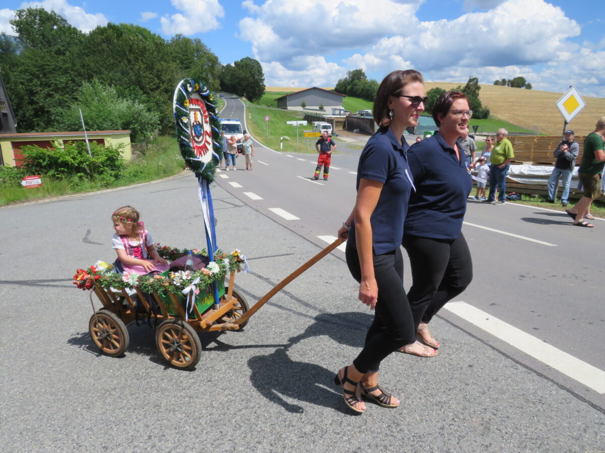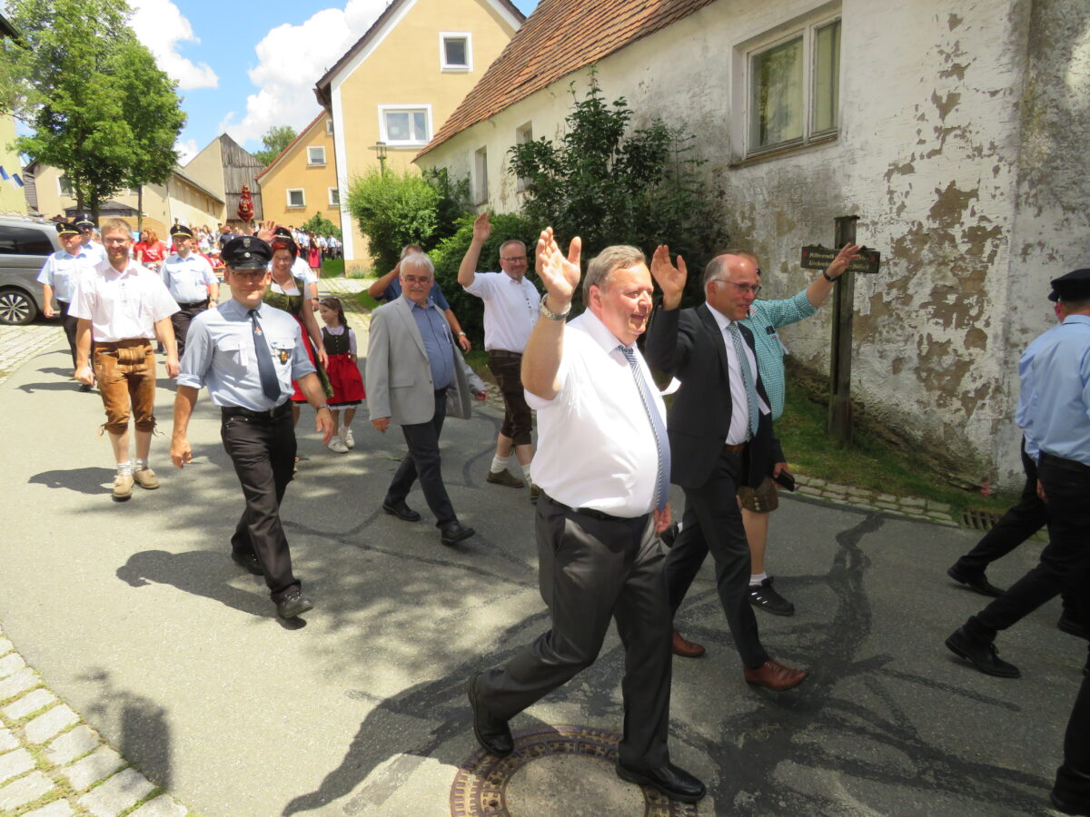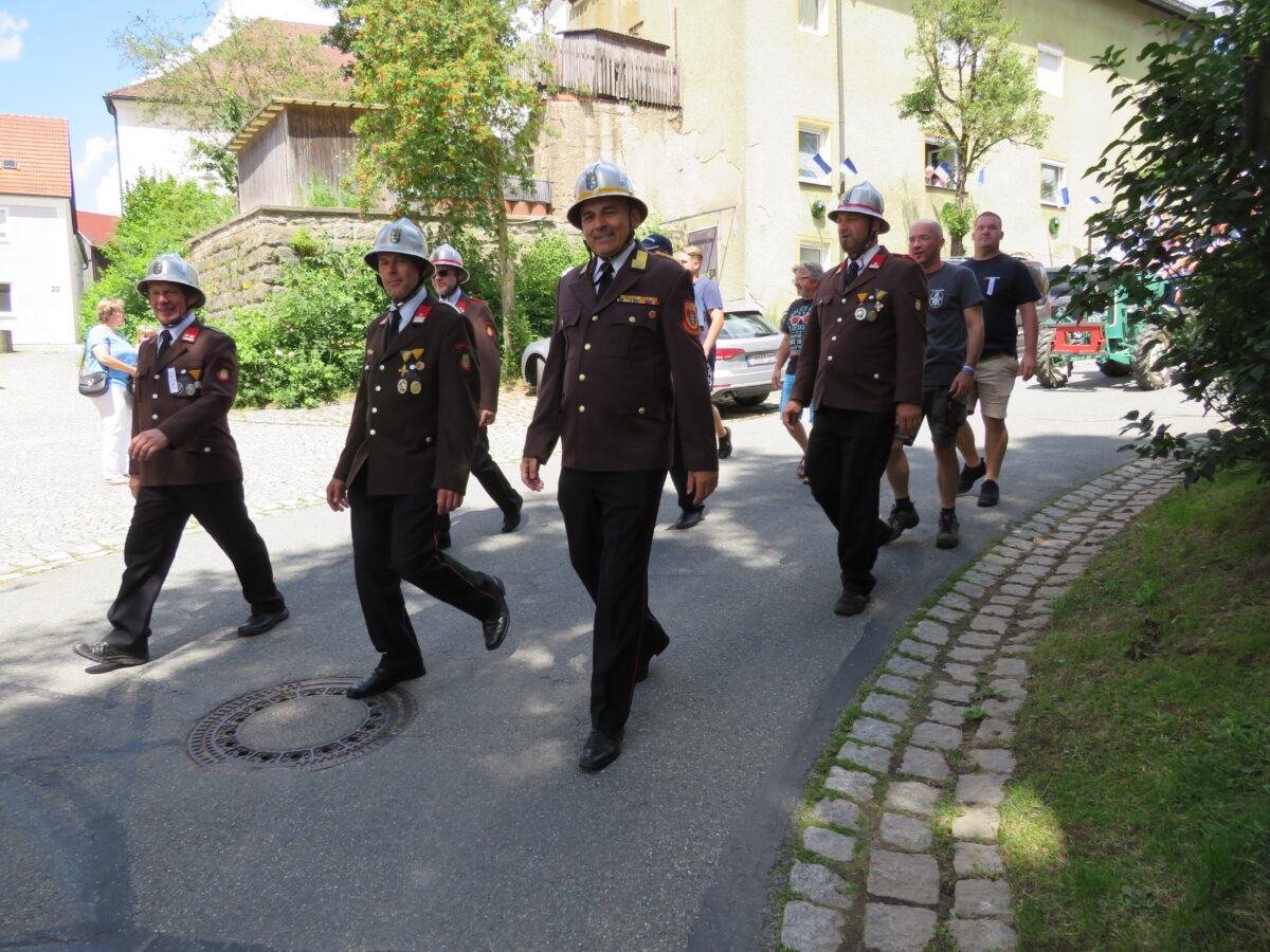 Höhepunkt der 150-Jahr-Feier der Feuerwehr war am Sonntag der Festzug durch Kirchendemenreuth zurück zum Festgelände. Pünktlich um 14 Uhr ertönte der Böllerschuss zum Start. 37 Gruppen hatten vorher Aufstellung beim Schimlstadel genommen. Drei Musikkapellen, die Landkreisführung, der Gemeinderat, mehrere Ortsvereine und Gastvereine aus Altenstadt und der Umgebung, die Fahnenabordnungen von Feuerwehren aus dem Landkreis Neustadt zogen mit dem Jubelverein und seinen Festdamen durch die Haberlandgemeinde. Nach dem Einzug der Fahnenträger übergaben die Festdamen das Fahnenband zum Jubiläum. Den Ausschank übernahm die Feuerwehr Klobenreuth. Die “Neuhauser Boum und Moidla” spielten zum Festausklang auf.