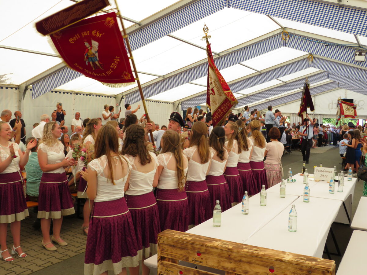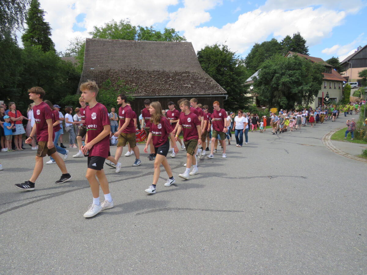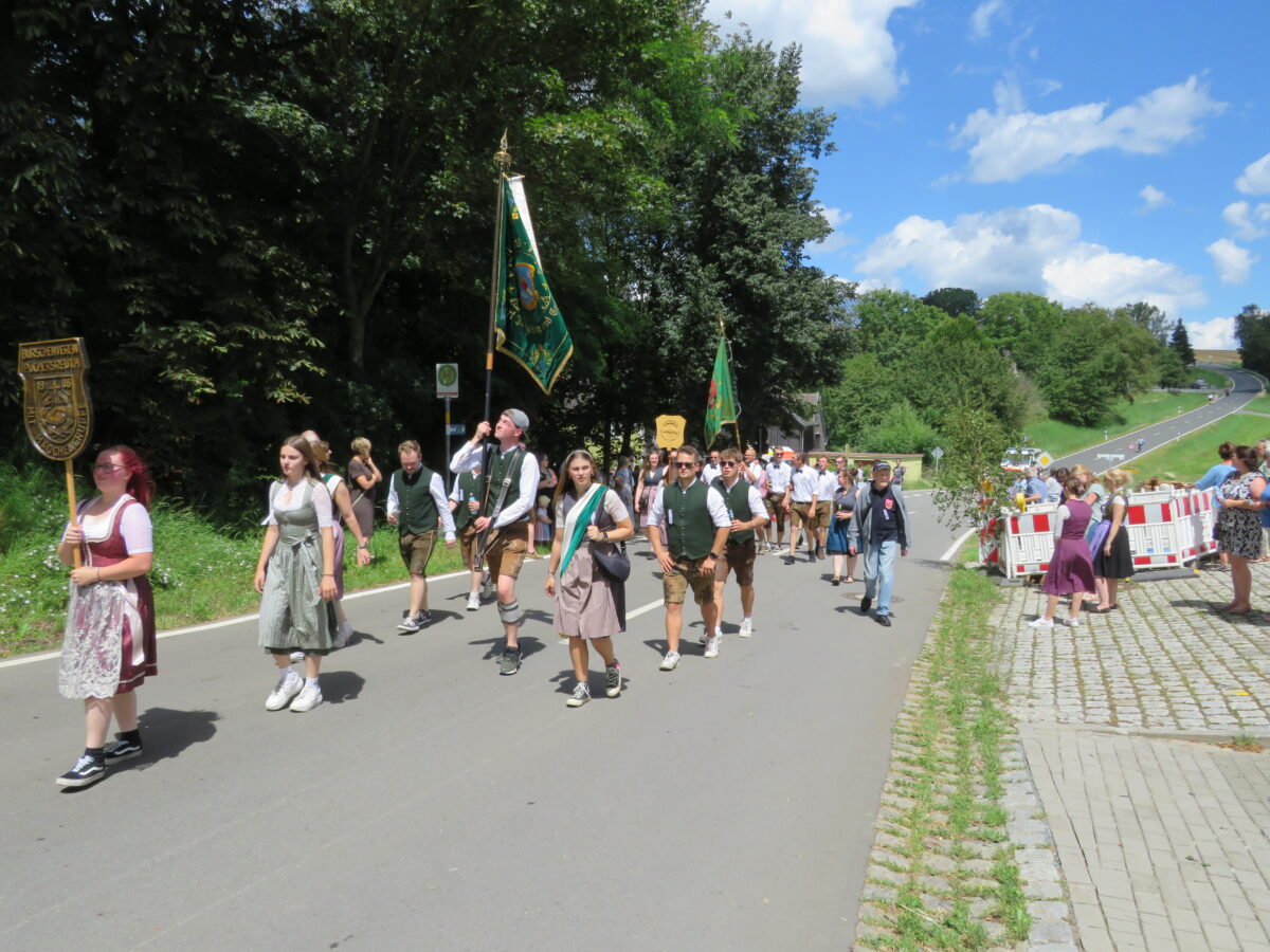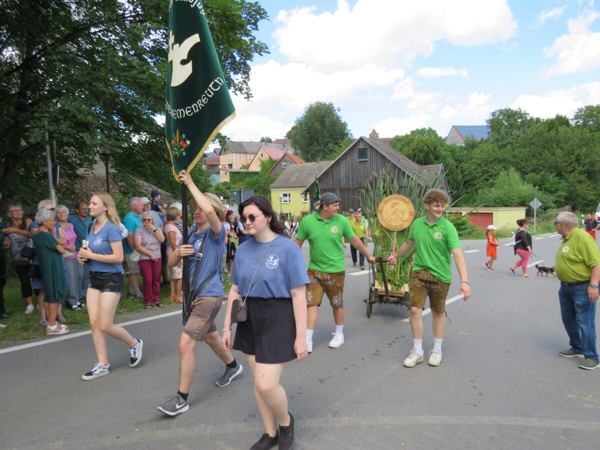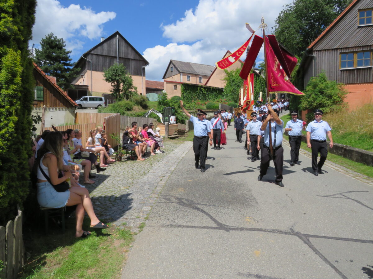Höhepunkt der 150-Jahr-Feier der Feuerwehr war am Sonntag der Festzug durch Kirchendemenreuth zurück zum Festgelände. Pünktlich um 14 Uhr ertönte der Böllerschuss zum Start. 37 Gruppen hatten vorher Aufstellung beim Schimlstadel genommen. Drei Musikkapellen, die Landkreisführung, der Gemeinderat, mehrere Ortsvereine und Gastvereine aus Altenstadt und der Umgebung, die Fahnenabordnungen von Feuerwehren aus dem Landkreis Neustadt zogen mit dem Jubelverein und seinen Festdamen durch die Haberlandgemeinde. Nach dem Einzug der Fahnenträger übergaben die Festdamen das Fahnenband zum Jubiläum. Den Ausschank übernahm die Feuerwehr Klobenreuth. Die “Neuhauser Boum und Moidla” spielten zum Festausklang auf.