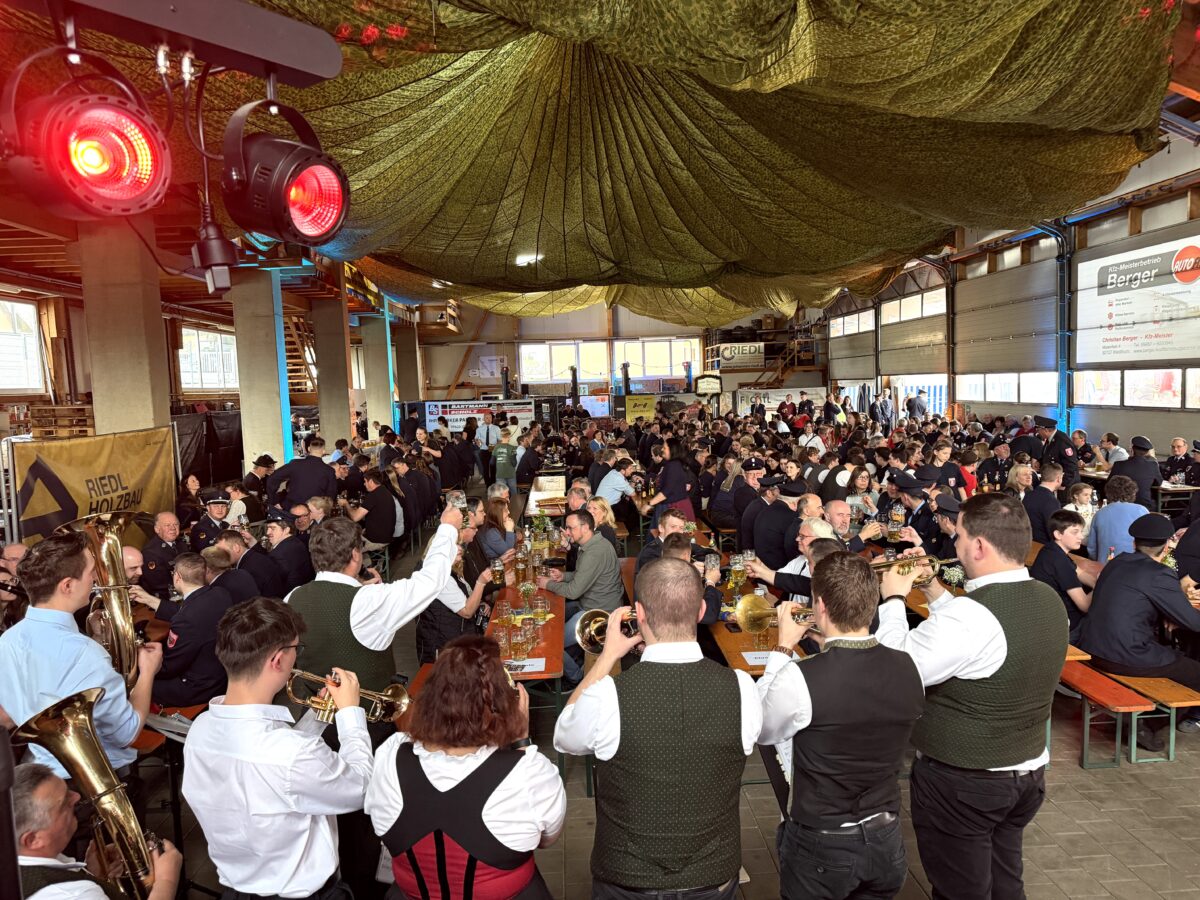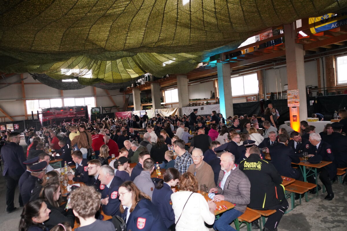 Im Anschluss an den offiziellen Teil marschierte ein langer Festzug, angeführt vom neuen Fahrzeug zur beheizten Halle des Lohnunternehmens Riedl, wo die Feier stattfand. Für die musikalische Unterhaltung sorgten die Trachtenkapelle Waldthurn sowie am Abend die „Oberpfälzer Buam Express“.