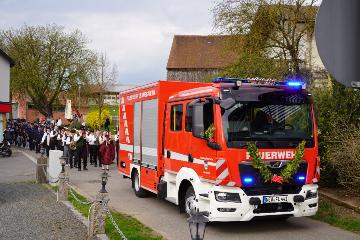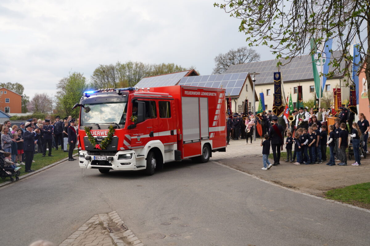 Nicht nur die Freude über das neue Einsatzfahrzeug, sondern auch das drumherum mit Festzug, feierlicher Segnung und anschließende Feier in der der Riedlhalle und das alles bei geradezu idealen Wetterbedingungen trieb der gesamt Feuerwehr Lennesrieth ein Strahlen ins Gesicht.
