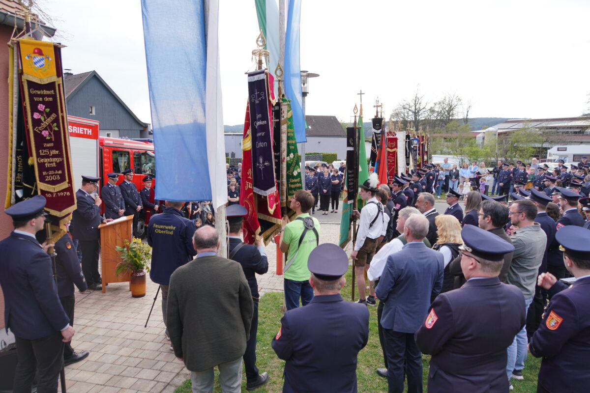 Am späten Nachmittag setzte sich der Festzug an der Dorfkirche St. Michael in Albersrieth in Bewegung und zog unter musikalischer Begleitung der Trachtenkapelle Waldthurn zum Feuerwehrgeräte Albersrieth. Dort nahm der Waldthurner Pfarrer Norbert Götz die Segnung des neuen Einsatzfahrzeugs vor und stellte es unter den Schutz Gottes. Die Lesung sprach stellvertretenden Vorsitzender Florian Stahl, die jungen Feuerlöwen Michael Riedl sowie Lorenz und Hannes Weig sprachen die Fürbitten. Imposant, das von Angela Wittmann und Veronika Janda festlich geschmückte neue Fahrzeug umrahmt von den vielen Menschen und Fahnenabordnungen.