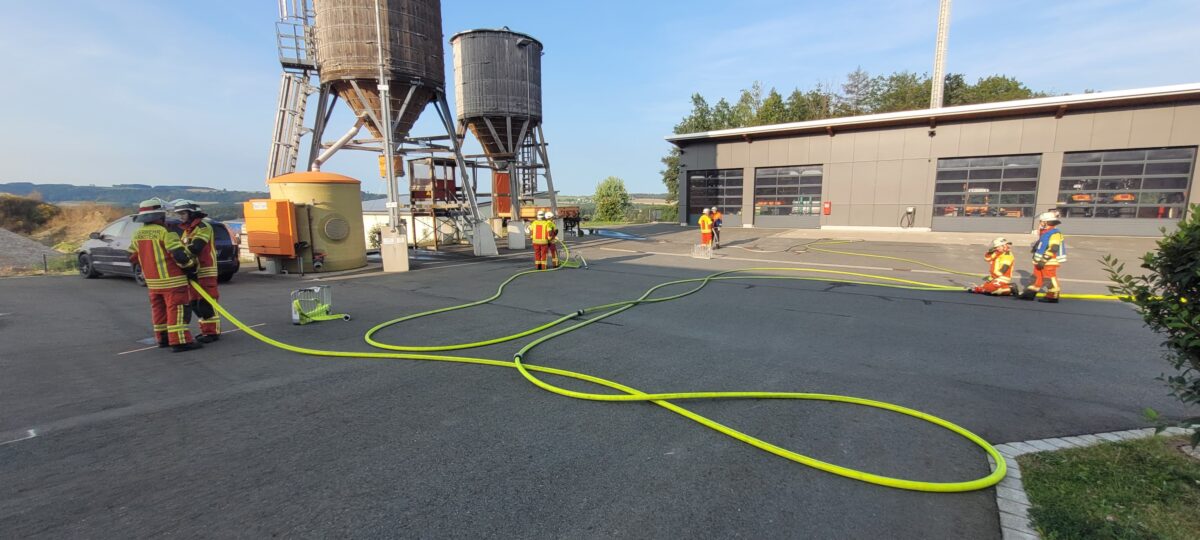 Neben den praktischen Übungen wurden Zusatzaufgaben wie Gerätekunde, Gefahrgutzeichen und Knotenkunde erfolgreich bewältigt. Der Tag endete mit der erfolgreichen Kopplung von vier Saugschläuchen zur Wasserentnahme innerhalb der vorgegebenen Zeit.