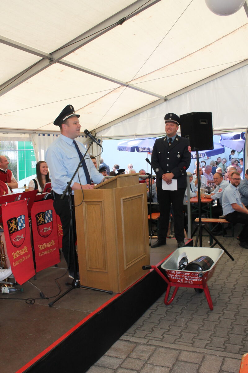 Auch Landtagsabgeordneter Tobias Reiß, der gemeinsam mit Bundestagsparlamentarier Albert Rupprecht angereist war, lobte Fleiß und Unermüdlichkeit der Feuerwehrdienstleistenden und formulierte als Auftrag an die Politik, „Anwalt der Fleißigen“ zu sein, die „die Gesellschaft zusammenhalten und unsere Heimat prägen“.