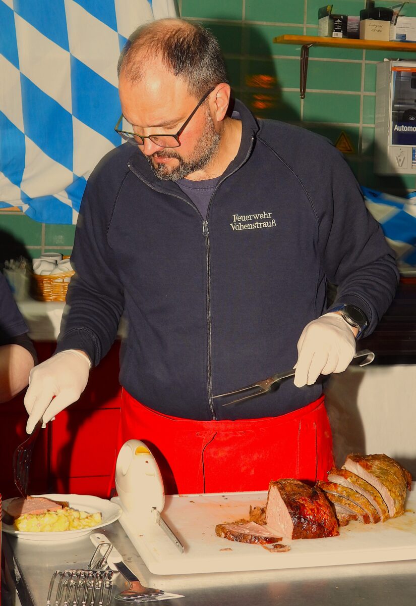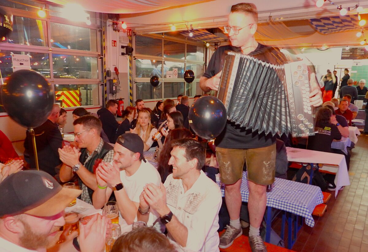 Samstag, 7. März 2026. Der edle Gerstensaft floss in Strömen, der Rollbraten mit „Erdepflsalat“ und die leckeren Brotzeiten wie Leberkäs‘, Fisch- und Lachsemmeln sowie Brez’n und Emmentaler-Schnittkäs‘ fanden reißenden Absatz. Die „DREI BOCKAD’N“ rissen die Gäste in der traditionell geschmückten und gut gefüllten Fahrzeughalle im Handumdreh‘n mit, sodass diese schon in kürzester Zeit singend und klatschend auf den Bänken standen. (M. Stangl)