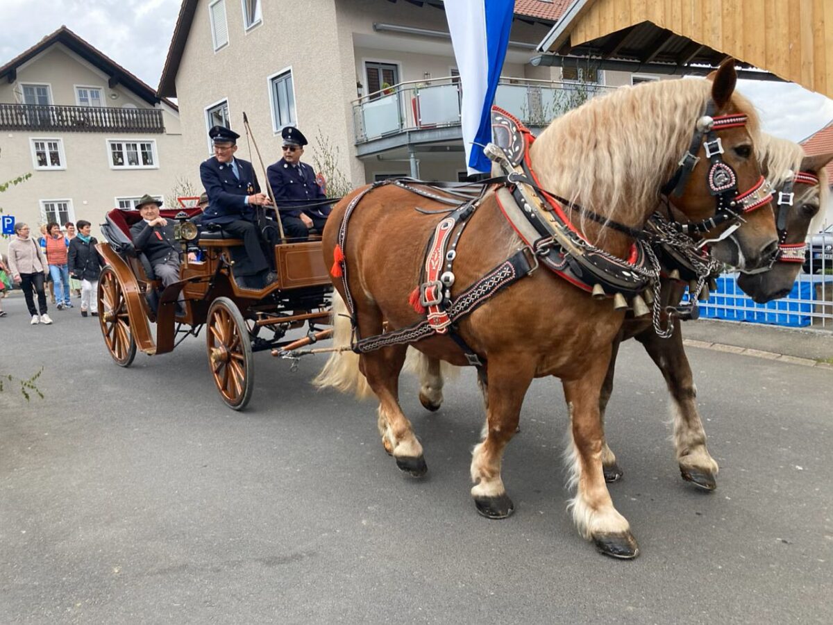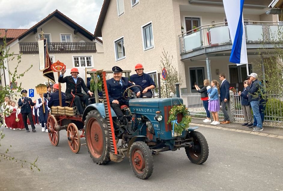 Der Höhepunkt des Jubelfestes war dann der Sonntag. Nahezu 130 Vereine waren gekommen, um sich mit ihren Fahnen unter den Klängen von fünf Musikkapellen in den Festzug einzureihen. Auch historische Fahrzeuge und alte Feuerwehrspritzen wurden teils von Oldtimerbullogs oder Pferden gezogen. Auch die Festdamen waren ein besonderes Schmuckbild im kaum endeten wollenden Festzug.