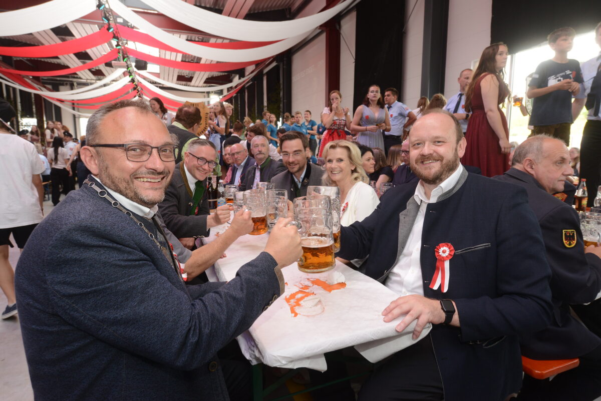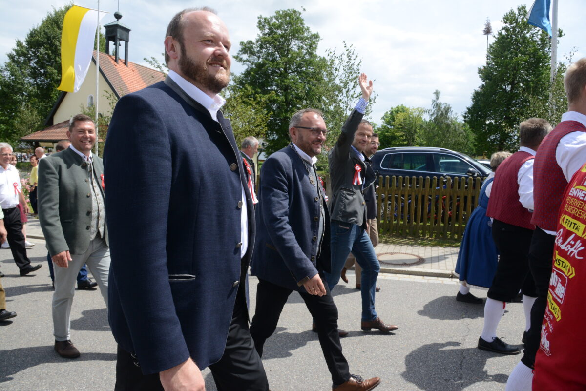 Landrat Andreas Meier, der Bundestagsabgeordnete Albert Rupprecht, der Landtagsabgeordnete Stephan Oetzinger, Bürgermeister Markus Bauriedl, der örtliche Marktgemeinderat und viele kommunale Mandatsträger aus der Umgebung marschierten im Zug mit. Und allen Vorhersagen zum Trotz brauchten die Festzugteilnehmer keinen Regenschirm, im Gegenteil, die Hitze verlangte regelmäßig einen Schluck aus der mitgeführten Flasche.