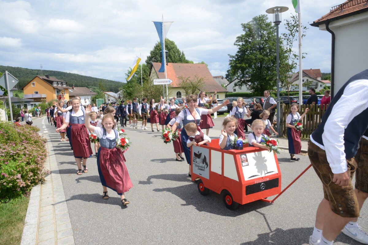 Beim nachmittäglichen Festzug beteiligten sich die Blasmusikkapellen aus Waidhaus, Pirk, Waldkirch und Roggenstein. Außerdem sorgten über sechzig Fußgruppen und neun Festwagen für ein beeindruckendes Bild im kleinen Ort Hagendorf. Viele Besucher säumten den Weg des Festzuges, der wiederum an der Festhalle begann und auch dort endete.