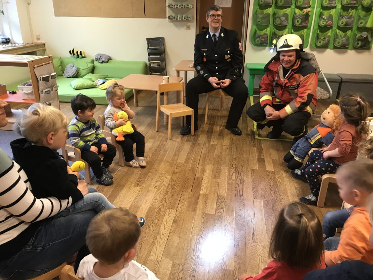 Die Kindergartenkinder erfahren, dass sie im Notfall zum Feuerwehrmann gehen und nicht weglaufen, damit sie gerettet werden können. Die Kinder lernten von der Gefährlichkeit des Feuers, von giftigem und tödlichem Rauch. Mit einfachen Übungen wurde den Kleinen das richtige Verhalten im Brandfall gezeigt und wie sie sich am besten vor Rauch schützen können.