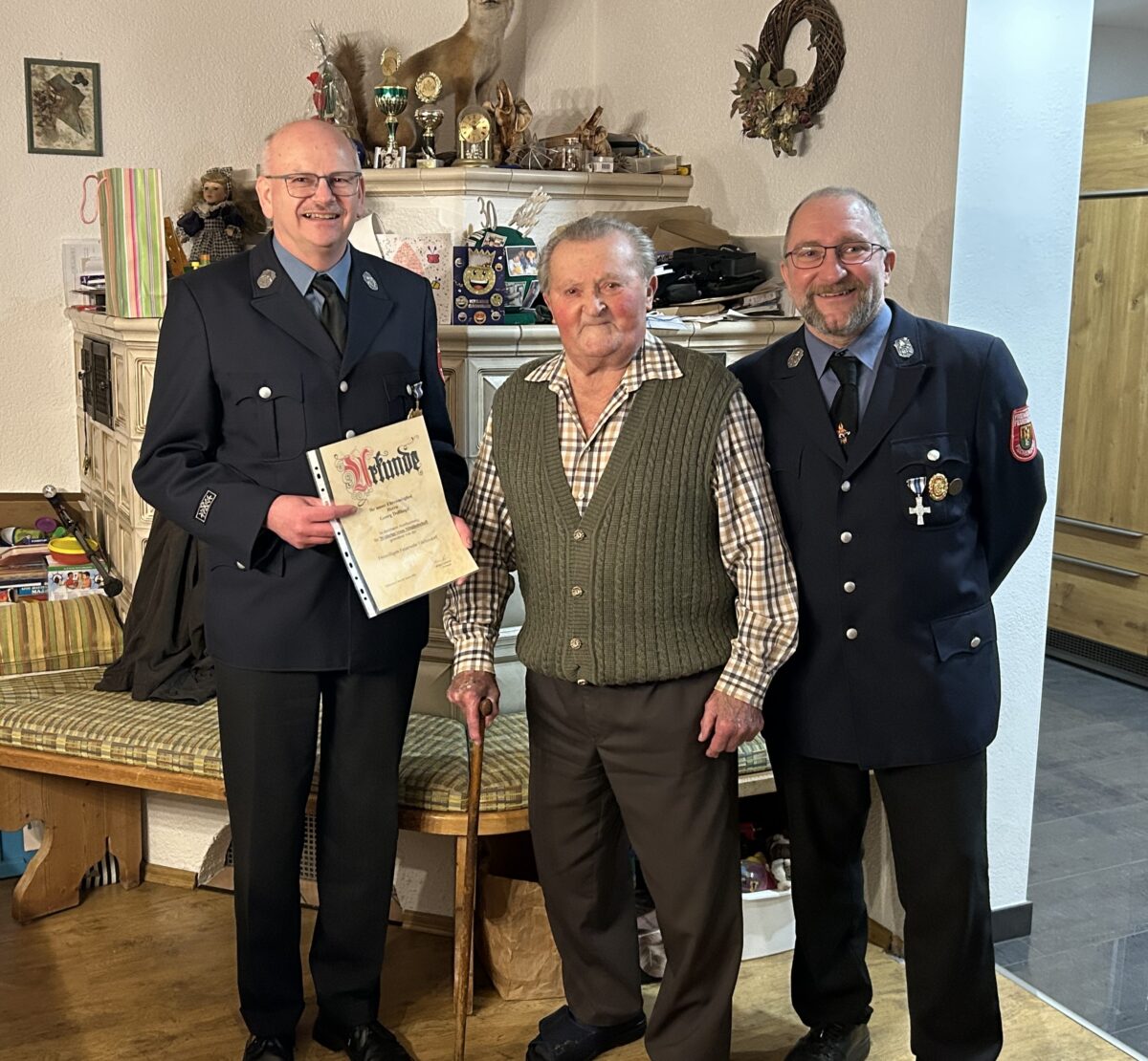 Anschließend wurden mehrere Mitglieder der Freiwilligen Feuerwehr für ihre langjährige Vereinstreue geehrt. Besonders hervorzuheben ist die Ehrung von Georg Dollhopf für 70 Jahre Mitgliedschaft.