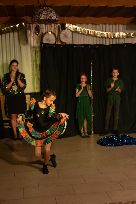 Im zweiten Block wurde es märchenhaft und viele Zuschauer wurden an ihre Kindheit und die Zeit vor dem Fernsehgerät erinnert. Das Kinderprinzenpaar entführte in die Welt von Peter Pan und Tinker Bell, Kinderfunkenmariechen Emily Neidhardt und Funkenmariechen Anna-Lena Würth zeigten atemberaubende Figuren und die Jugendgarde machte einen Sprung nach England. Mit Harry Potter und die Zauberwelt von Hogwarts waren viele hübsche Magier unterwegs und zeigten Highlights aus der Zauberschule. Danach enterte das „doppelte Mariechen“ Emilia Gaßner und Antonia Glaeser die Tanzfläche. Das Publikum musste Acht auf Ihre Wertsachen geben, denn die beiden Tänzerinnen waren als Piratinnen verkleidet und brachten den Fluch der Karibik nach Ilsenbach. Jeder Aufritt versprühte viel Freude am Tanz und an der Bewegung, war fehlerfrei und mit traumwandlerischer Sicherheit aufgeführt, was auch dem Prinzenpaar zu attestieren ist, welches mit einem weiteren Showtanz den zweiten Block beendete.