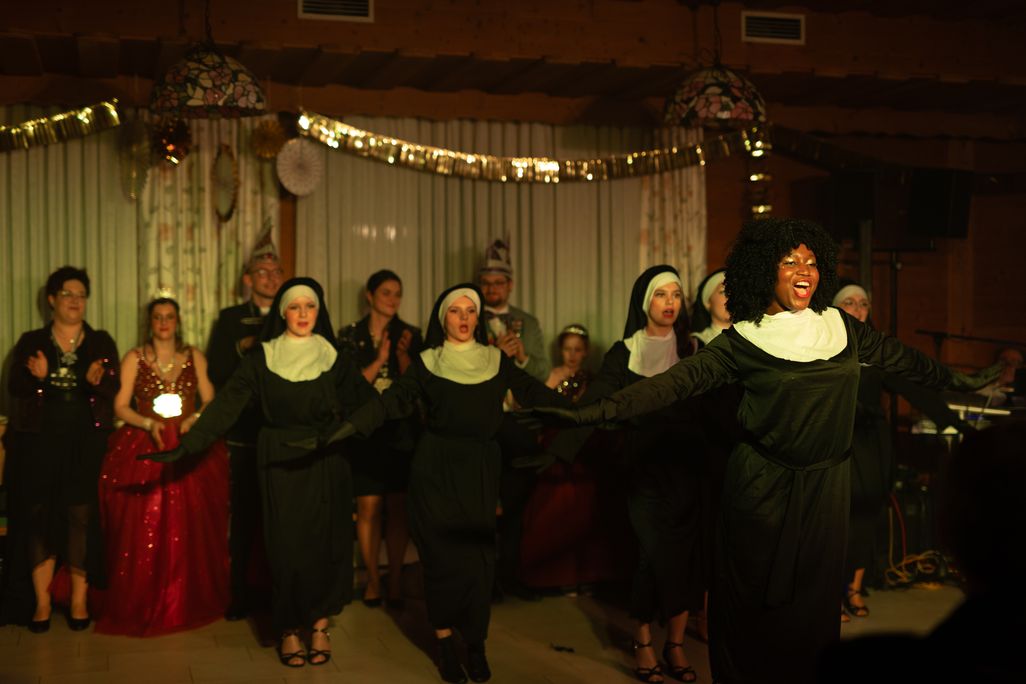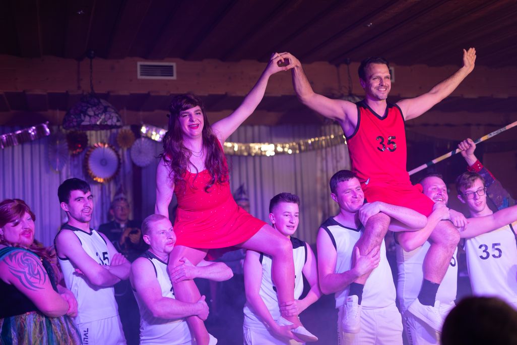 Vor ausverkauftem Haus präsentierte sich die gesamte Faschingsgesellschaft in bester Frühform und belohnte sich für die harte Trainingsarbeit der letzten Monate. Zudem schaffte es die Tanz- und Stimmungsband „Fiede & Ritsch“ das Publikum bis in die frühen Morgenstunden, auch zwischen den einzelnen Auftritten, zu unterhalten und so für beste Laune unter den zahlreichen Narren zu sorgen.