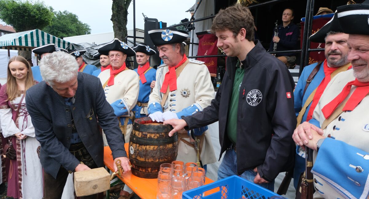 Mit nur einem Hammerschlag zapfte das Marktoberhaupt ein altes Holzfass der früheren Bären-Bräu aus Neustadt an und wünschte ein friedliches Fest. Willkommene Gäste waren aus Laos gekommen, die bei Gerlinde Engel zu Besuch waren und sich das Fest nicht entgehen lassen wollten. Marktrat Markus Staschewski kümmerte sich als OWV-Vorsitzender um die Besucher aus der Partnergemeinde Tlucna/Tschechien, die vorher unter Begleitung mit Bürgermeister Jan Opl eine Wanderung nach Hildweinsreuth machten. Freundschaftliche Bande erneuerten und verstärkten sich bei geselliger Runde am Fest.