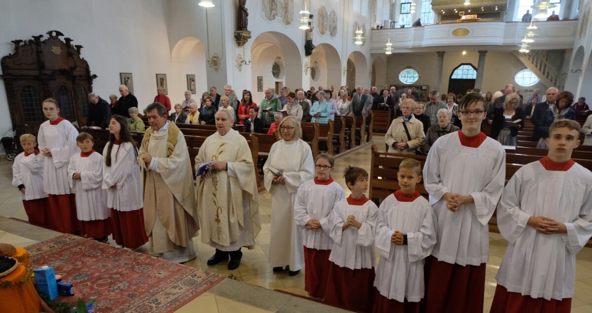 Den Festgottesdienst zelebrierten Pfarrer Max Früchtl und Gründungspfarrer, Bischöflicher Geistlicher Rat Josef Most (Pfreimd). Die Gläubigen stimmten in das von der Flossenbürger Blaskapelle unter Leitung von Franz Völkl begleitete Lied:“ Nun danket alle Gott“ ein und sangen abschließend „Segne du Maria“.