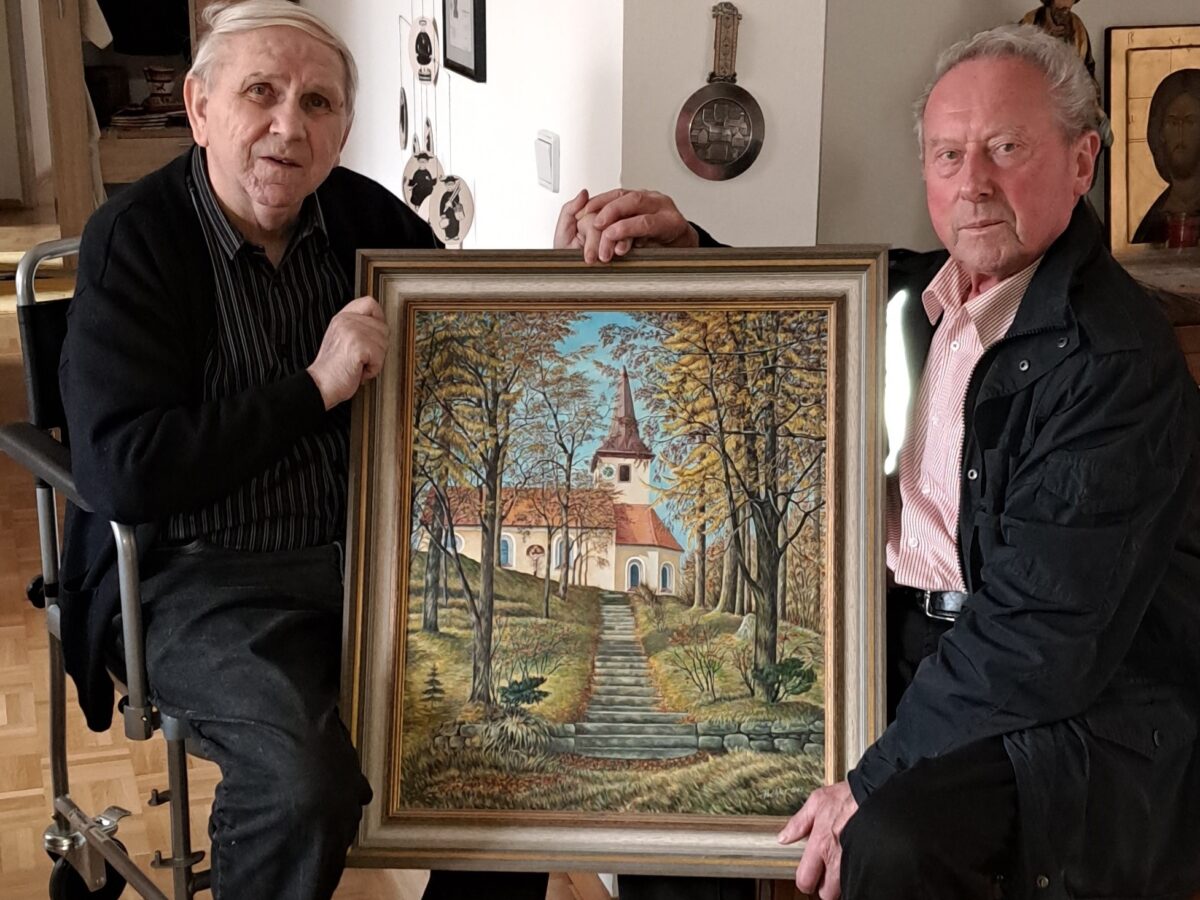 Das Flosser Heimatmuseum im Alten Pflegschloss ist um ein weiteres, wertvolles Exponat, einem Ölgemälde mit dem Motiv des St. Nikolausberges mit Wallfahrtskirche, reicher. Erich Schieder hat sich auf den Weg nach Pfreimd gemacht, den Spender des Bildes, Pfarrer Josef Most, abgeholt und nach Floß gefahren. Im Heimatmuseum war Pfarrer Most über die Einrichtung und den vorhandenen Exponaten sehr angetan.
