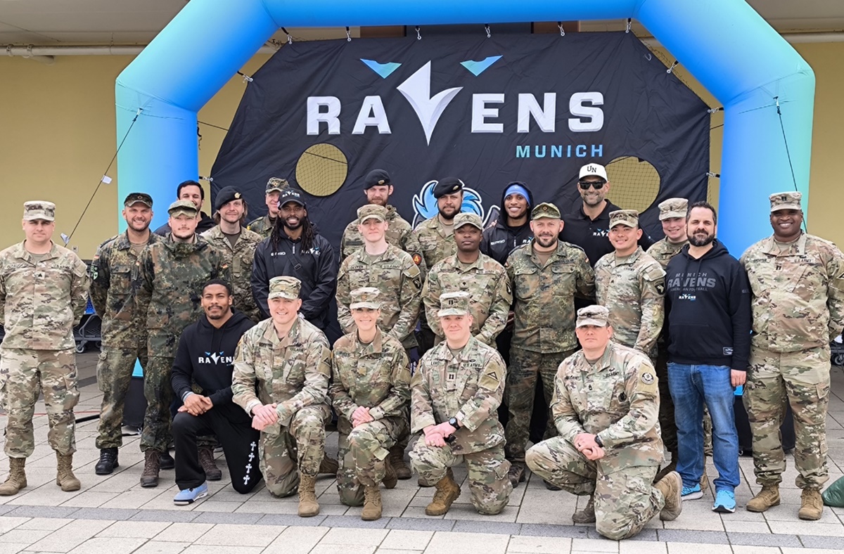 Auf dem Truppenübungsplatz in Grafenwöhr ist er und auch seine Spieler zum ersten Mal. Er ist beeindruckt, wie hier alles abläuft. Neben den Autogrammen und Fotos gab es eine Rundfahrt über das Gelände bis hin zu einer Vorführung durch eine Artillerie Einheit. Es waren aber nicht nur amerikanische Soldaten mit ihren Angehörigen gekommen, um die Munich Ravens zu sehen. Auch deutsche, dänische und ungarische Soldaten waren neugierig, die beliebteste Mannschaftssportart der USA und deren Spieler zu sehen. Natürlich kamen die Ravens nicht ohne Hintergedanken nach Grafenwöhr.