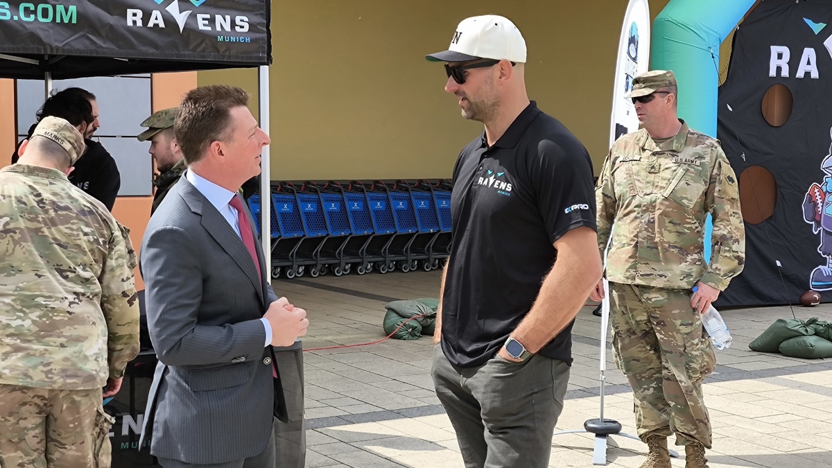Als besondere Überraschung war auch der Generalkonsul der USA in München, Timothy Liston, gekommen. „Seitdem ich hier Generalkonsul bin, wollte ich den Amerikan Football hier vorantreiben. Dies hat sich nun hier in Grafenwöhr ergeben“, so der Fan der New York Gaints. Auch Garrison Commander Colonel Kevin Poole ist großer Football Fan und freute sich über den Besuch der Munich Ravens. Mit einigen gezielten Würfen zeigten beide dann auch ihr Können.