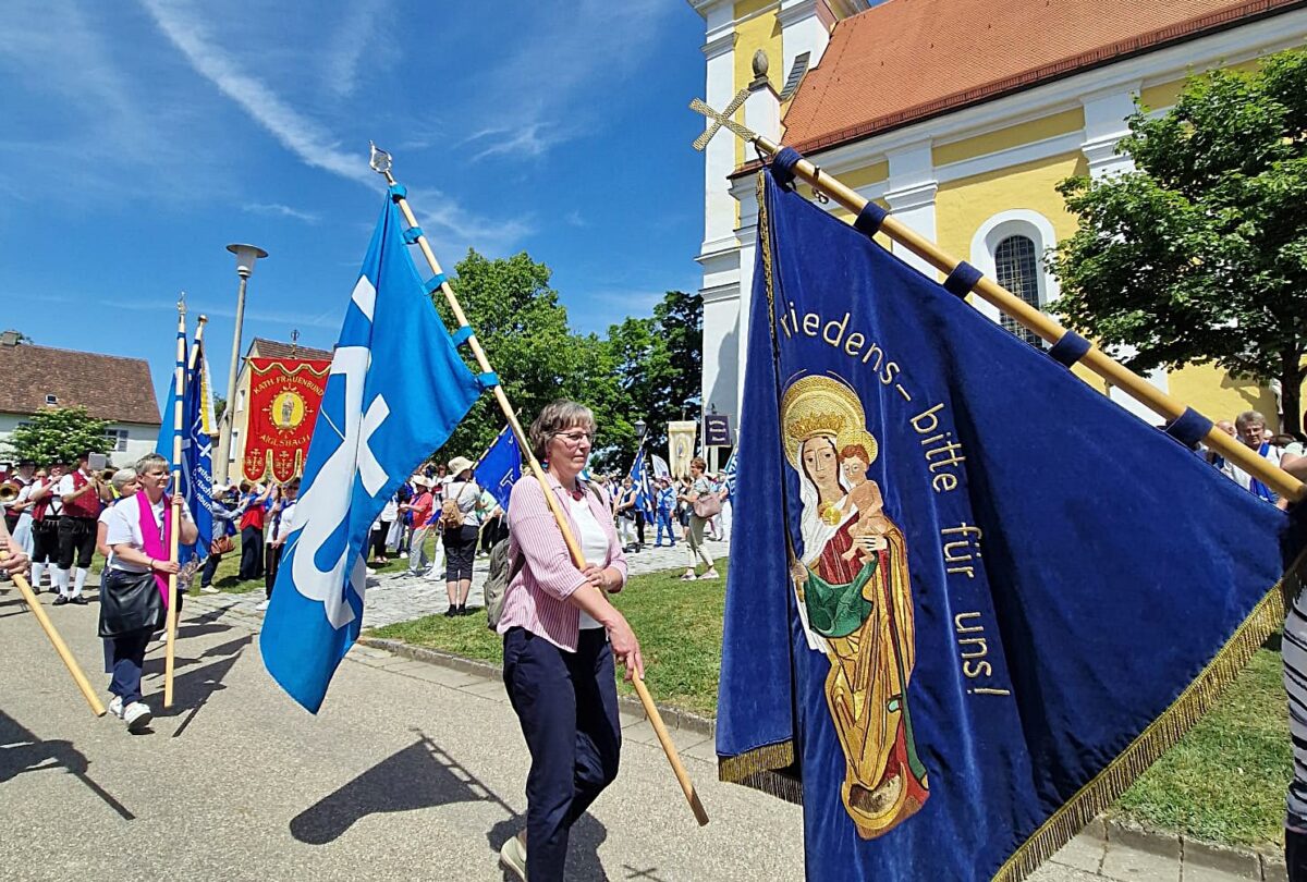 Ein besonderes Highlight war das Prediggespräch zwischen Pfarrer Markus Meier und der Geistlichen Diözesanbeirätin Birgit Pfaller. Gemeinsam spannten sie den Bogen vom Motto der Wallfahrt zur Zukunft der Kirche. „Die Auferstehung ist nicht nur ein Ereignis, sie ist ein Auftrag: Die Kirche lebt durch uns!“, betonte Pfarrer Meier eindringlich. Passend dazu segnete er eine große Kerze. Nach der Messe zog ein eindrucksvoller Fahnenzug rund um die Kirche, ein farbenfrohes Bekenntnis zum Glauben und zur Gemeinschaft des Frauenbundes. Abschließend fanden die Teilnehmerinnen schattige Plätzchen im Grünen. Die Essensstände wurden von langen Schlangen gesäumt, besonders begehrt: Die eigens kreierte KDFB-Radler sowie der Kaffeebecher mit Logo, samt Inhalt.