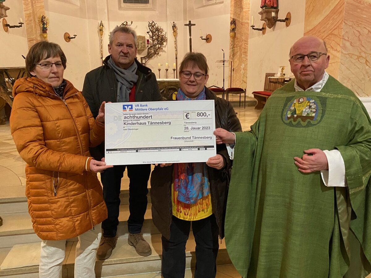 Nach dem Vorabendgottesdienst am Samstag hatte der Frauenbund Tännesberg eine Überraschung bereit. Neben der erst vor kurzem überreichten Spende von 450 Euro aus dem Kräuterbuschenverkauf, konnten die Vorsitzende Sonja Schmid-Herdegen und Kassiererin Monika Wittmann mit satten 800 Euro für den Bau des Kinderhauses aufwarten.