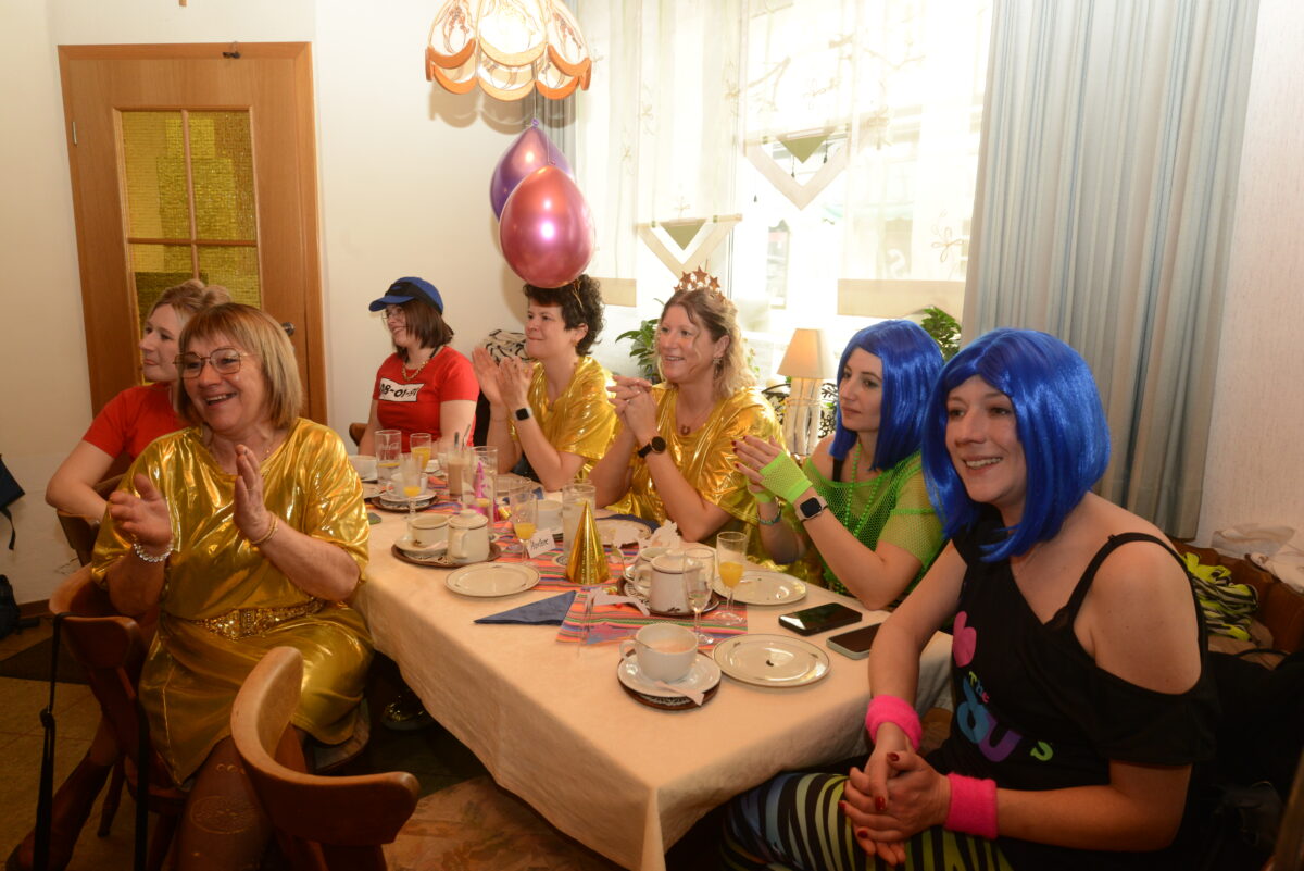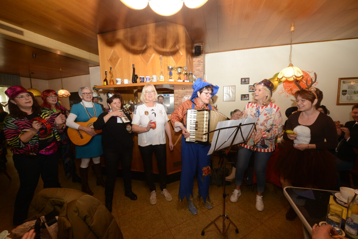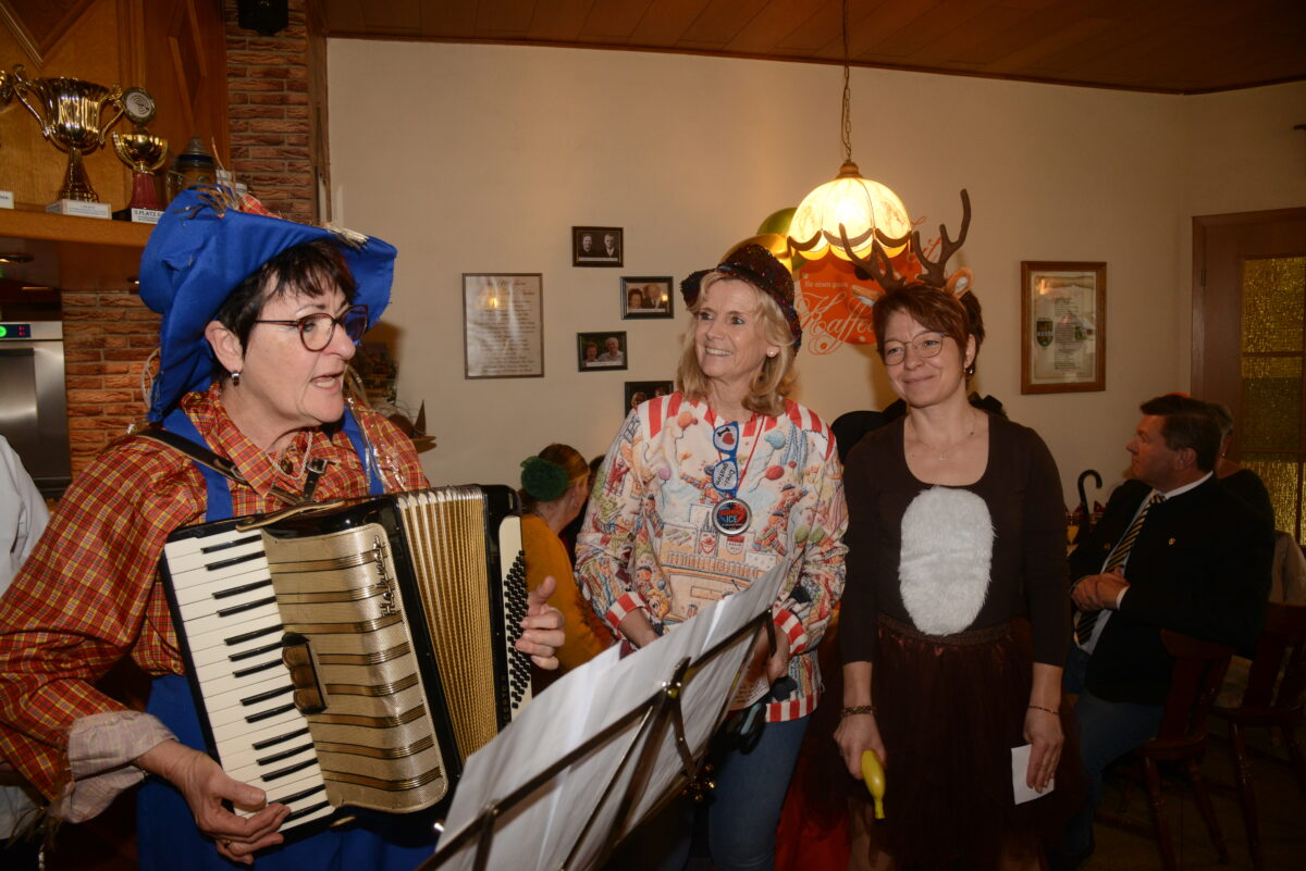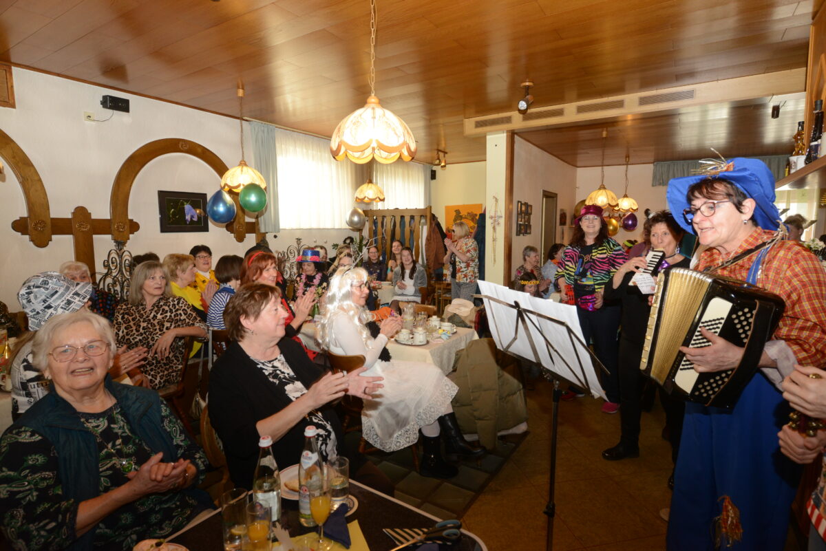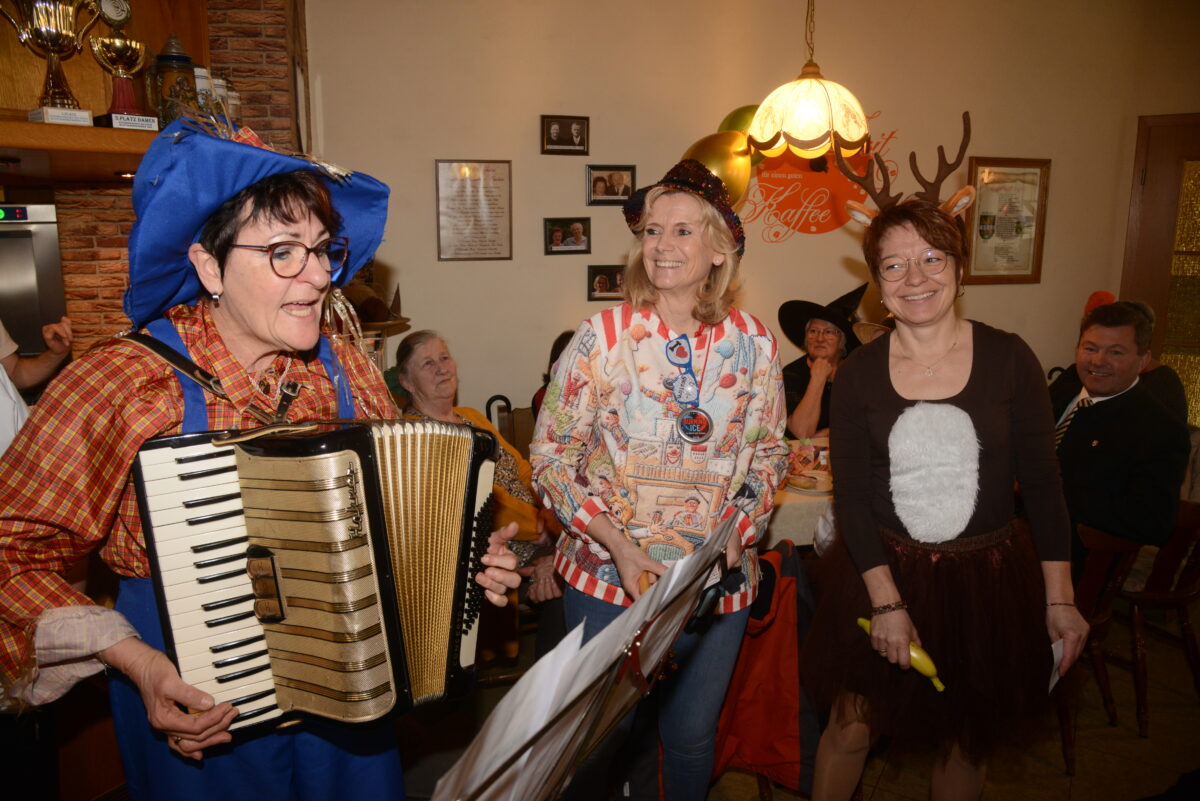 Dann gibt’s bei den Sketchen Anleihen bei Loriot sowie Volker Heißmann und Martin Rassau. Und es gibt auch eine Einlage ohne Worte, aber für jedermann oder jede Frau leicht zu verstehen. Selbstverständlich haben sich die Besucherinnen wunderschön kostümiert.