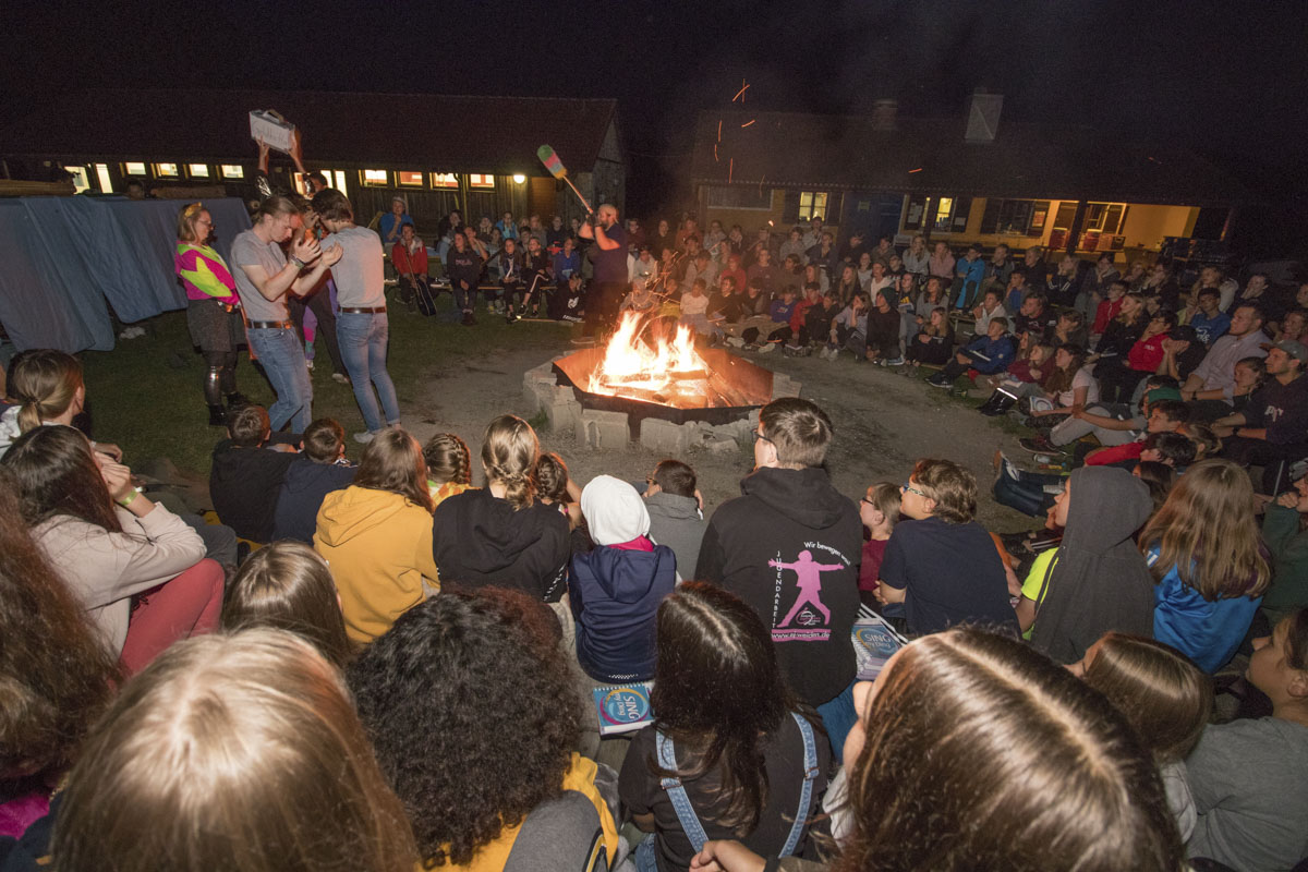 In den elf Tagen in Plößberg gibt es einiges zu erleben: Die Jugendlichen leben in ihren kleinen “Fams” im Zelt zusammen, powern sich beim Beachvolleyball und vielen weiteren interessanten Spielen aus und können ihrer Kreativität freien Lauf lassen. Abkühlung von der Action bieten ein Pool und natürlich der “Große Weiher”. Gemeinsames Kochen und Exkursionen mit verschiedenen Pädagogen gehören genauso zum Ferienabenteuer wie die gemütlichen Abendstunden am riesigen Lagerfeuer.