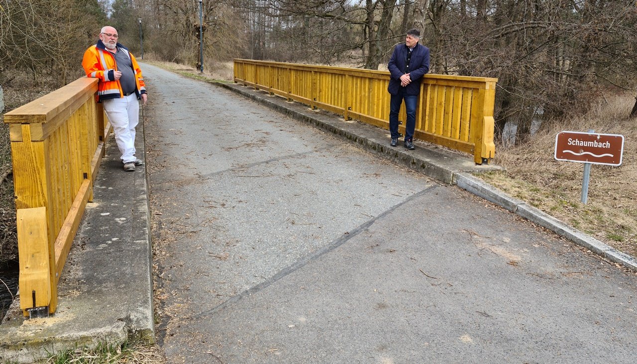 Das alte Geländer auf der Schaumbachbrücke war in die Jahre gekommen: Das Holz war morsch und verfault – ganz zu schweigen vom Anblick. Bürgermeister Edgar Knobloch war entschlossen: “Da muss jetzt was gemacht werden.” Schließlich habe die Stadt eine Verkehrssicherungspflicht auf dem Fuß- und Radweg.