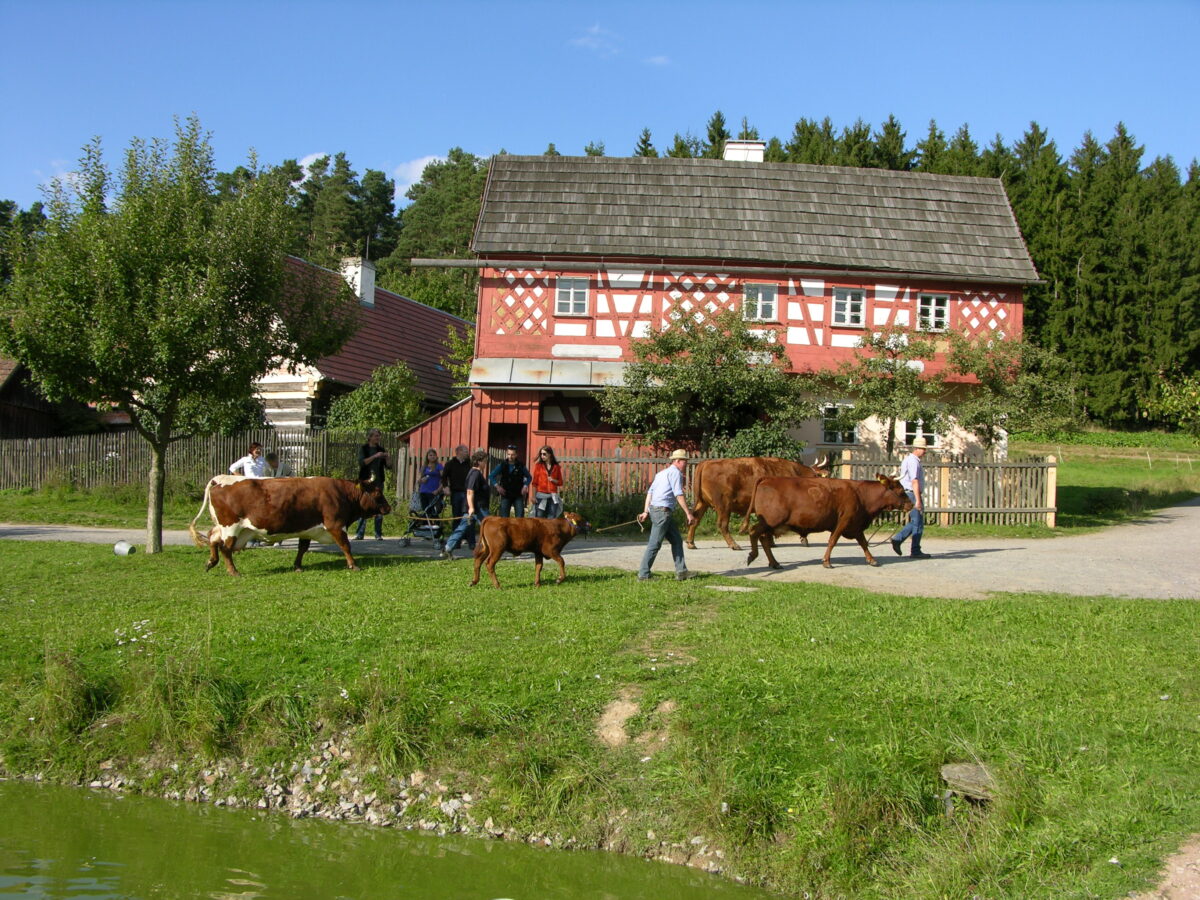 Im Freilandmuseum grasen überall Schafe. Die werden im Frühsommer geschoren. Weil es in dieser Jahreszeit in der Oberpfalz nochmal richtig kalt werden kann und die Schafe dann so ganz nackt sind und frieren müssen, heißt diese Zeit im Volksmund auch „Schoufskält“. Aber „Wolli, das Schaf“ kann am Wochenende von den Kindern mit echter Museumsschafwolle sozusagen wieder angezogen werden. Dafür liegen Vorlagen zum Basteln im Denkenbauernhof bereit.