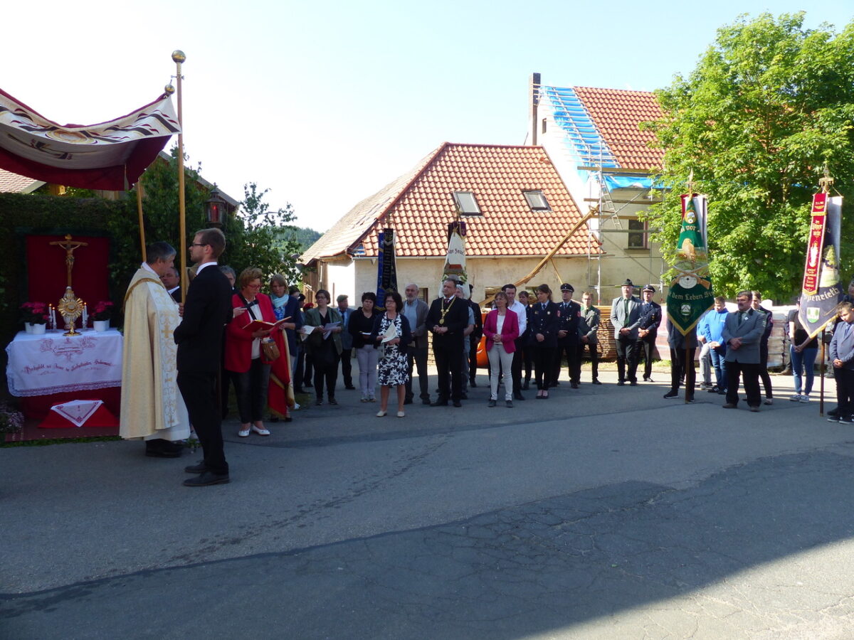 Beim letzten Altar bedankte sich der Pfarrer bei allen, die zu den Vorbereitungen und Durchführungen dieses Festtages, der in Döllnitz bereits am Dreifaltigkeitssonntag stattfand, beteiligt waren. Nachdem Schlusssegen endete am vierten Altar das Fronleichnamsfest, das Hochfest des Leibes und Blutes Christi.