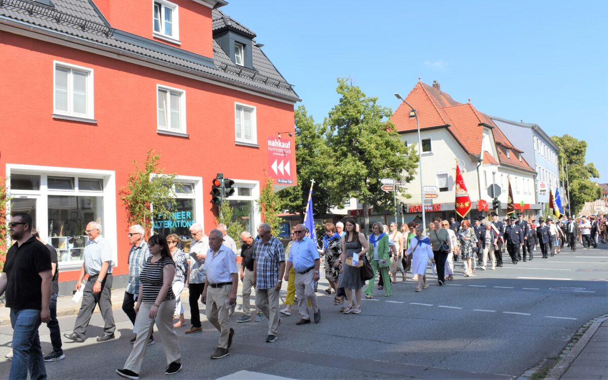 Die Gläubigen zogen nach dem Gottesdienst mit der Monstranz durch die Straßen Grafenwöhrs zum Altar, der dieses Jahr im Stadtpark aufgestellt war, um zu beten und ein Glaubenszeugnis zu geben.