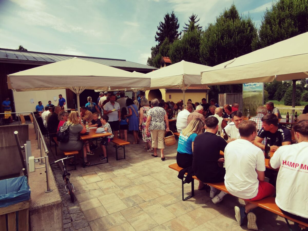 Dabei wechseln sich die 57 Festdamen und 21 Festburschen ständig ab. Bestens organisiert vom neunköpfigen Organisations-Team “Festdamen und Festburschen” um Markträtin Laura Roth und dritten Bürgermeister Bernd Reil war am Kommunbrauhaus bei sommerlichen Temperaturen der Frühschoppen und das Mittagessen.