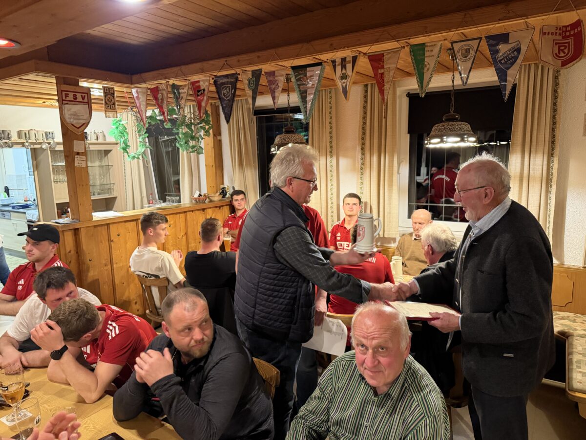 Laut Ertl konnte man sich mit den „Eigengewächsen“ Jonas Seer und Daniel Bergmann für die neue Saison verstärken. Ein Glücksfall sei Trainer Ronny Tölzer und Simon Bauer sowie Max Stark als Co. – Trainer. Ertl sprach vom Trainingslagerwochenenden mit Trainingslager in CZ Chomutov und die Unterstützung des FSV – Förderkreises um Hubert Pühler. Die Saison laufe bisher zufriedenstellend und man sei auf dem 3. Platz in der A-Klasse Amberg Weiden Ost platziert, allerdings sei der Aufstieg nur mehr rein rechnerisch möglich.