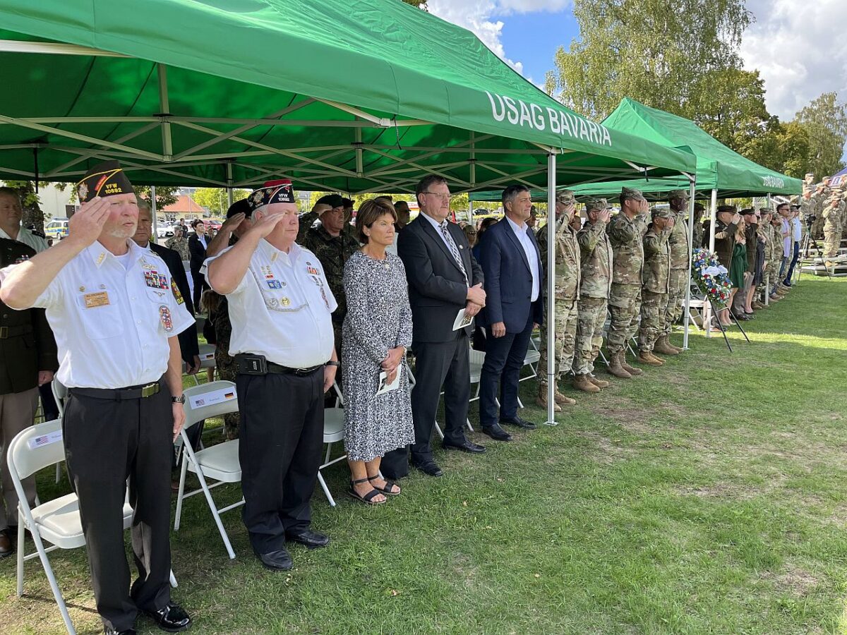Kulisse für die Zeremonie waren Einsatzkräfte und Fahrzeuge des US-Fire-Departments, der Militärpolizei und der Bayerischen Polizei vor den auf halbmast gesetzten Flaggen. Zivile Gäste, Soldaten mit dem USAG-Kommandeur, Oberst Kevin Pool, zivile Mitarbeiter, Einsatzkräfte, Bundeswehr und Vertreter der umliegenden Gemeinden mit den Bürgermeistern Edgar Knobloch und Hans Martin Schertl nahmen an der Feier teil.